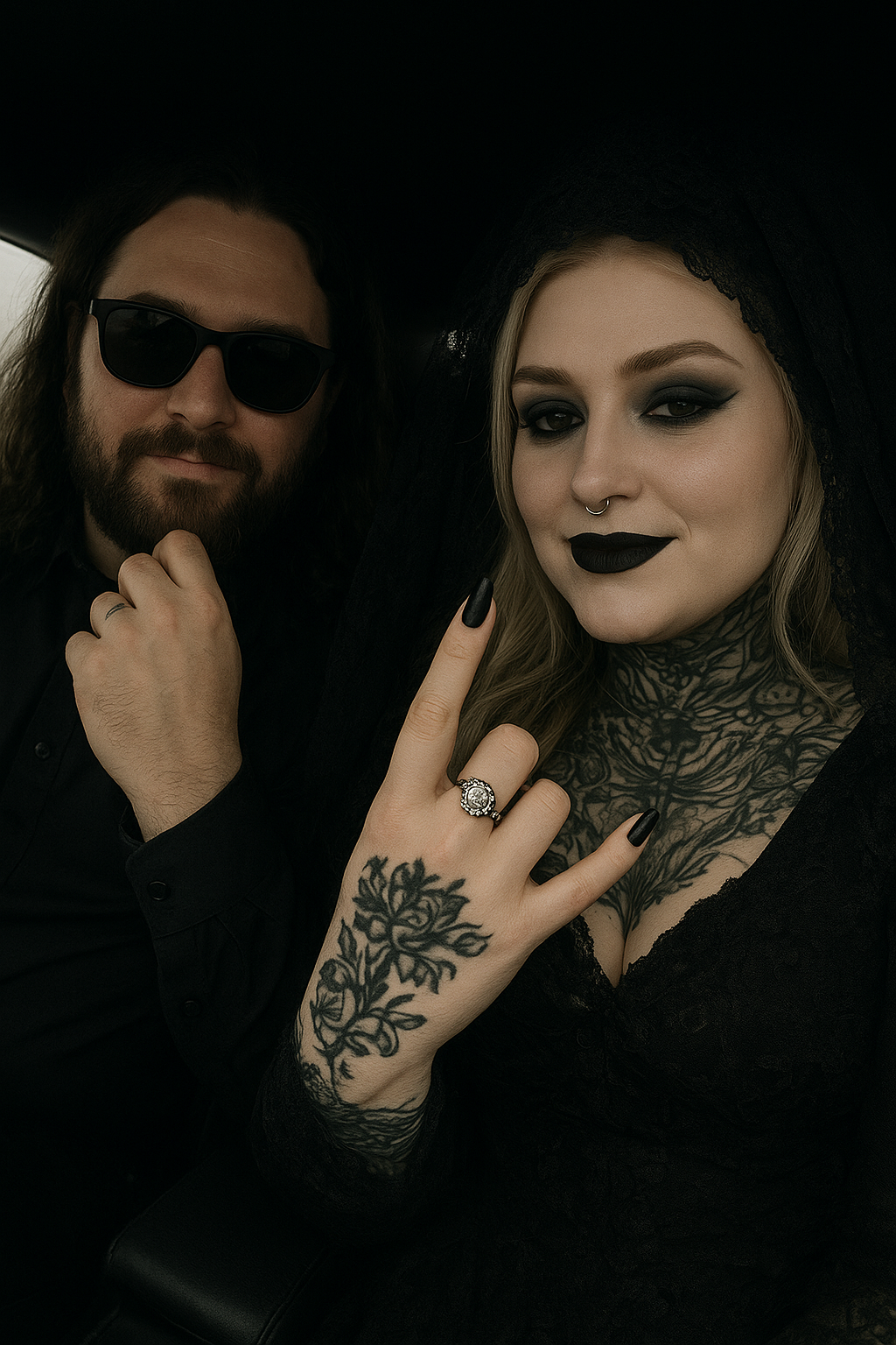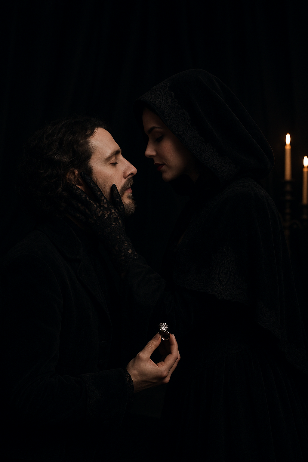 I searched for a gothic platinum ring that carried the weight of eternity, a piece that felt like moonlight forged into metal. @Eglanejewelry transformed my imagination into a relic worthy of our story. Then, in secret, I arranged the Victorian gothic photoshoot we had dreamt about for years — velvet shadows, flickering candlelight, and the kind of atmosphere where time feels like it holds its breath.