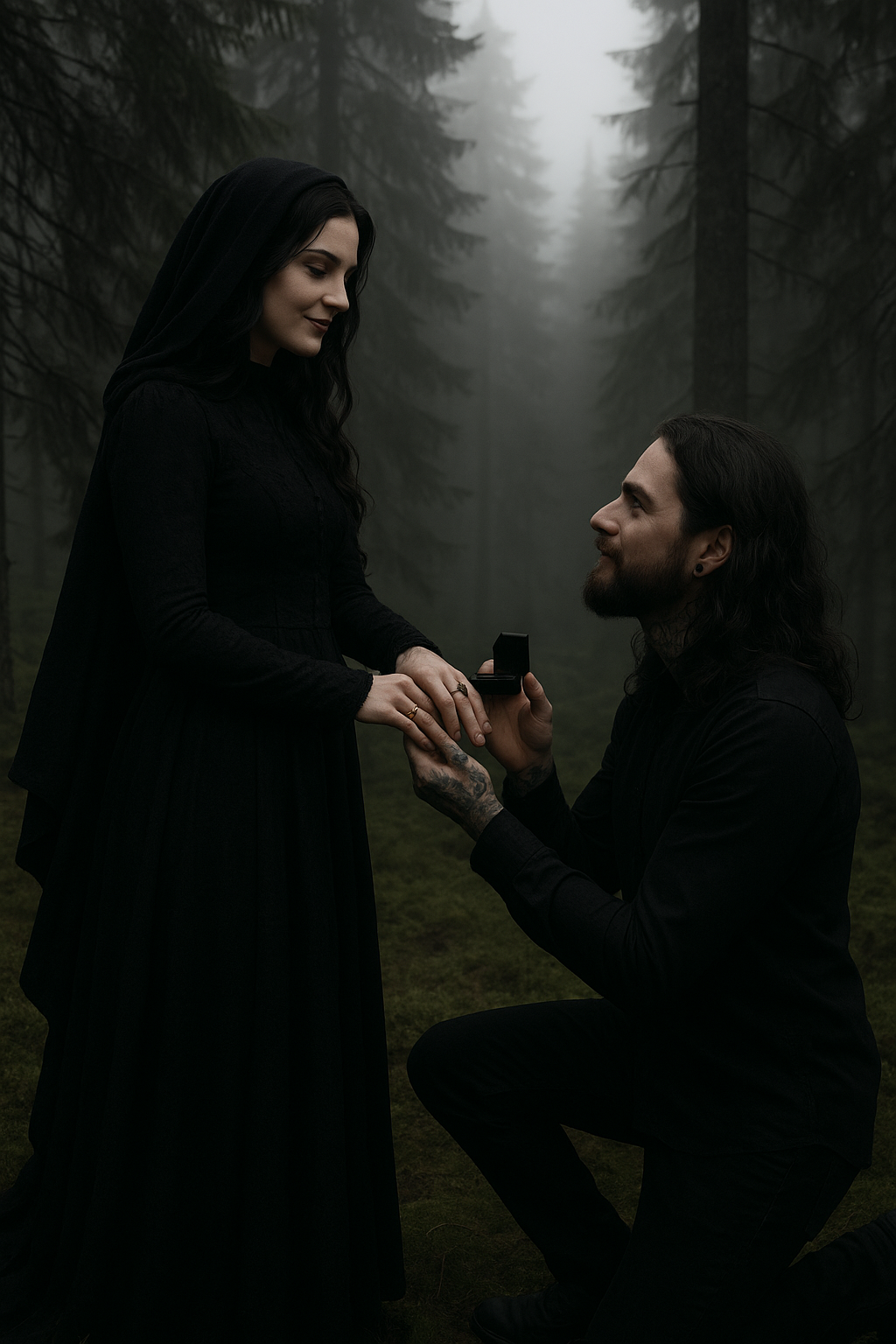 He dropped to one knee on the moss-covered ground, the mist curling around us like a gothic veil. And when he asked me to marry him, the mountains held our promise in their quiet, ancient way.