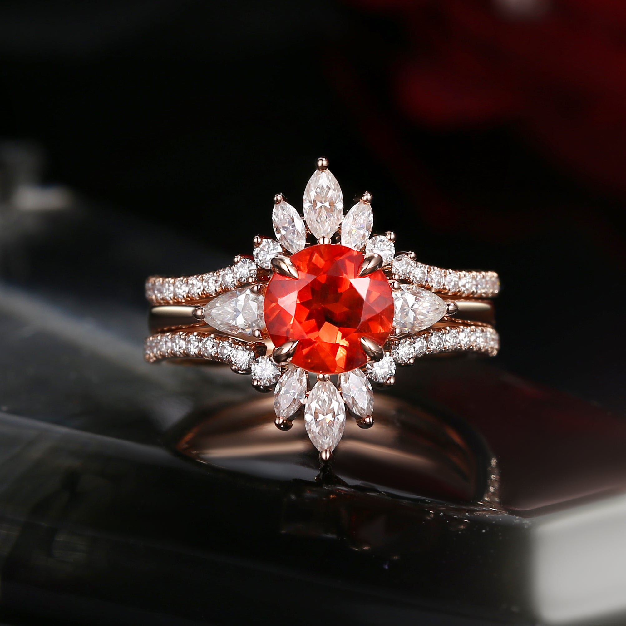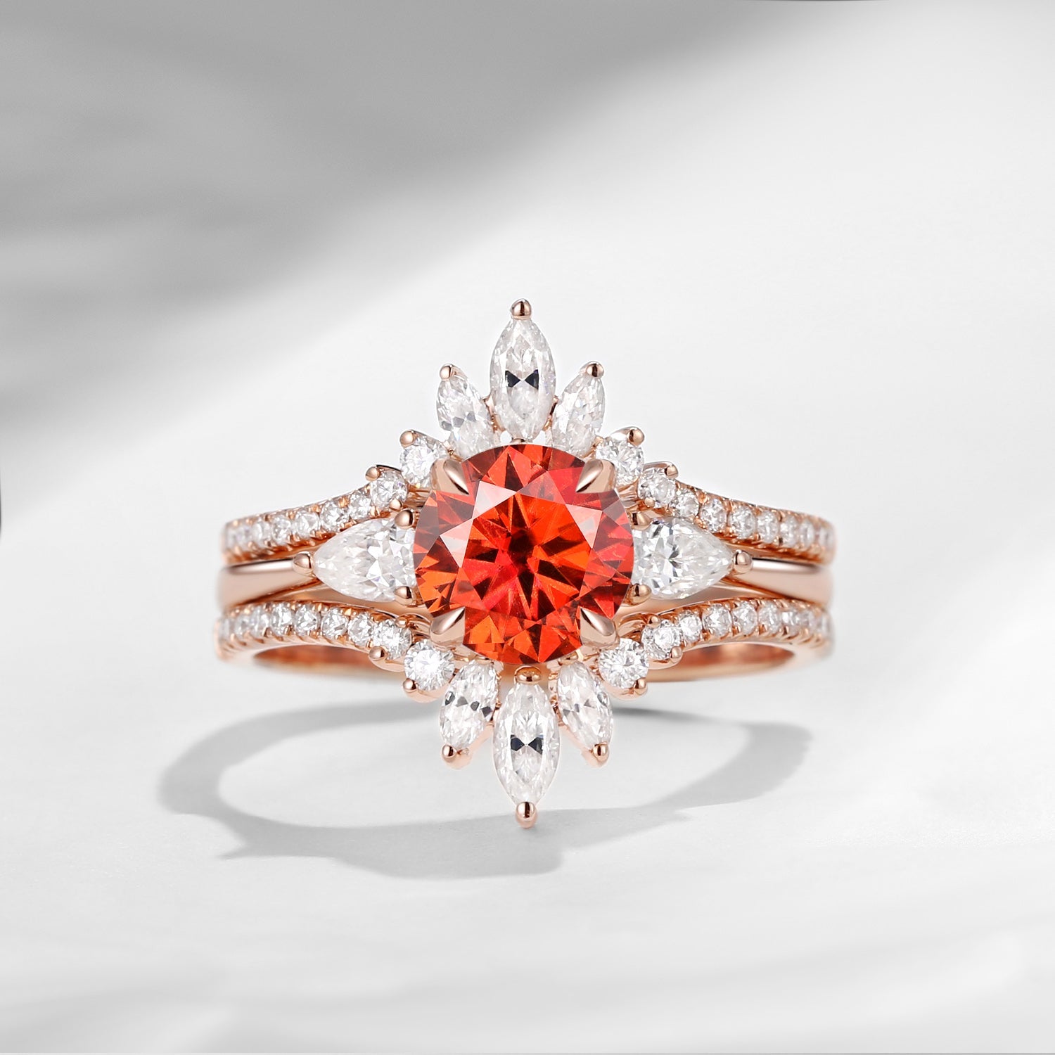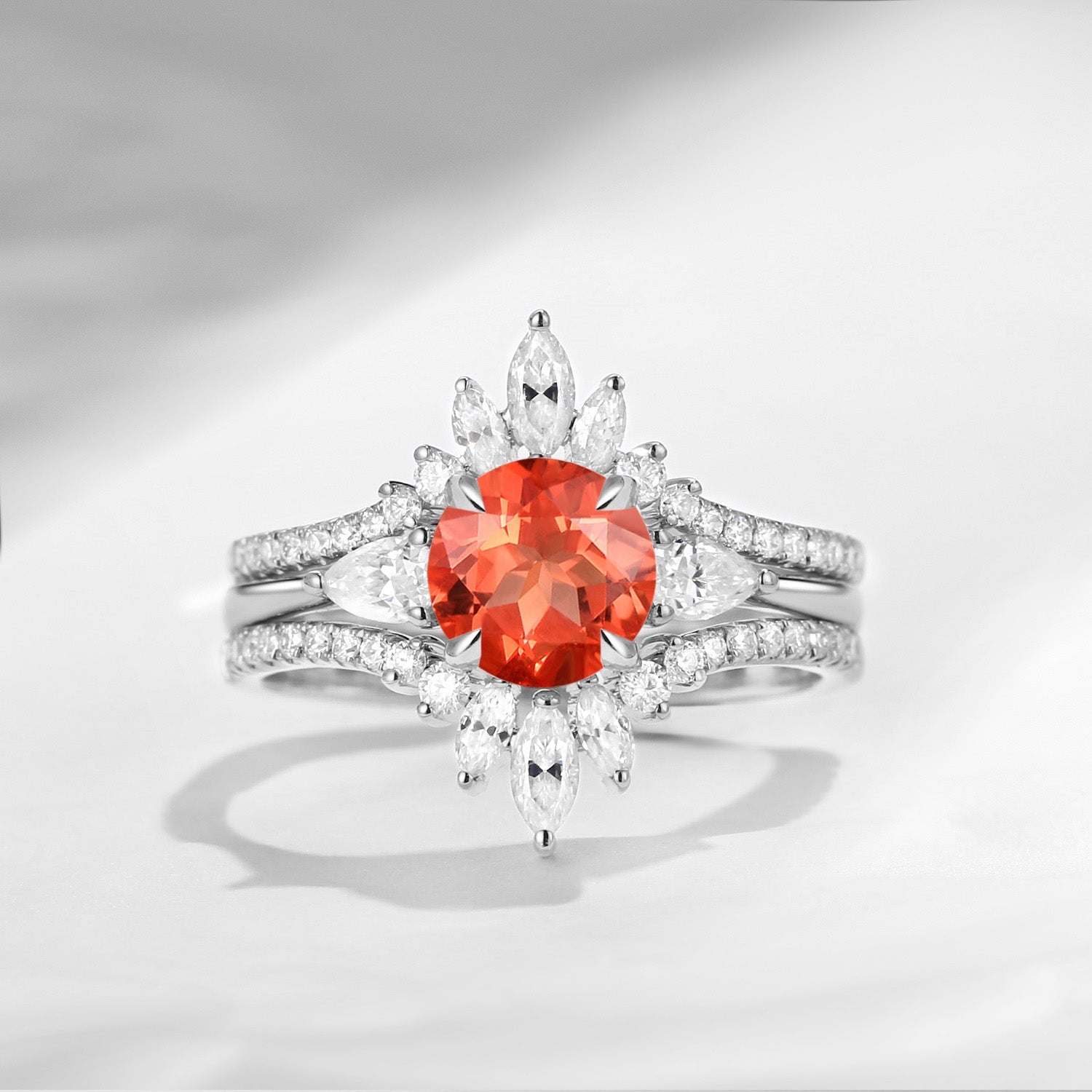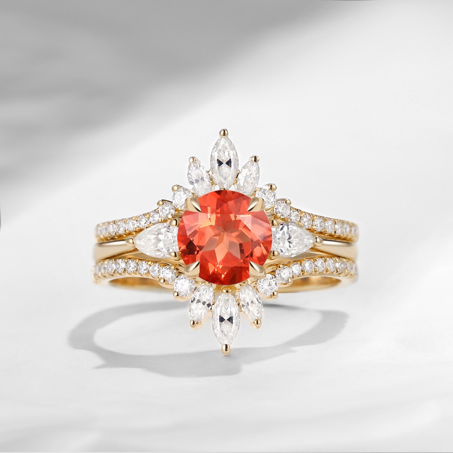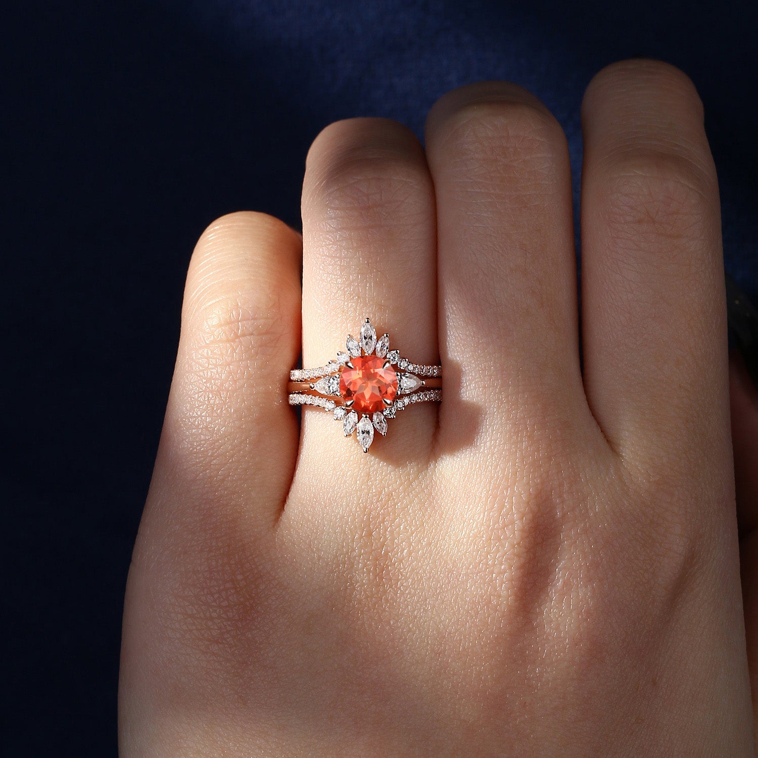 Bette‘s Eyes| Sunstone Cluster Bridal Ring Set 3pcs