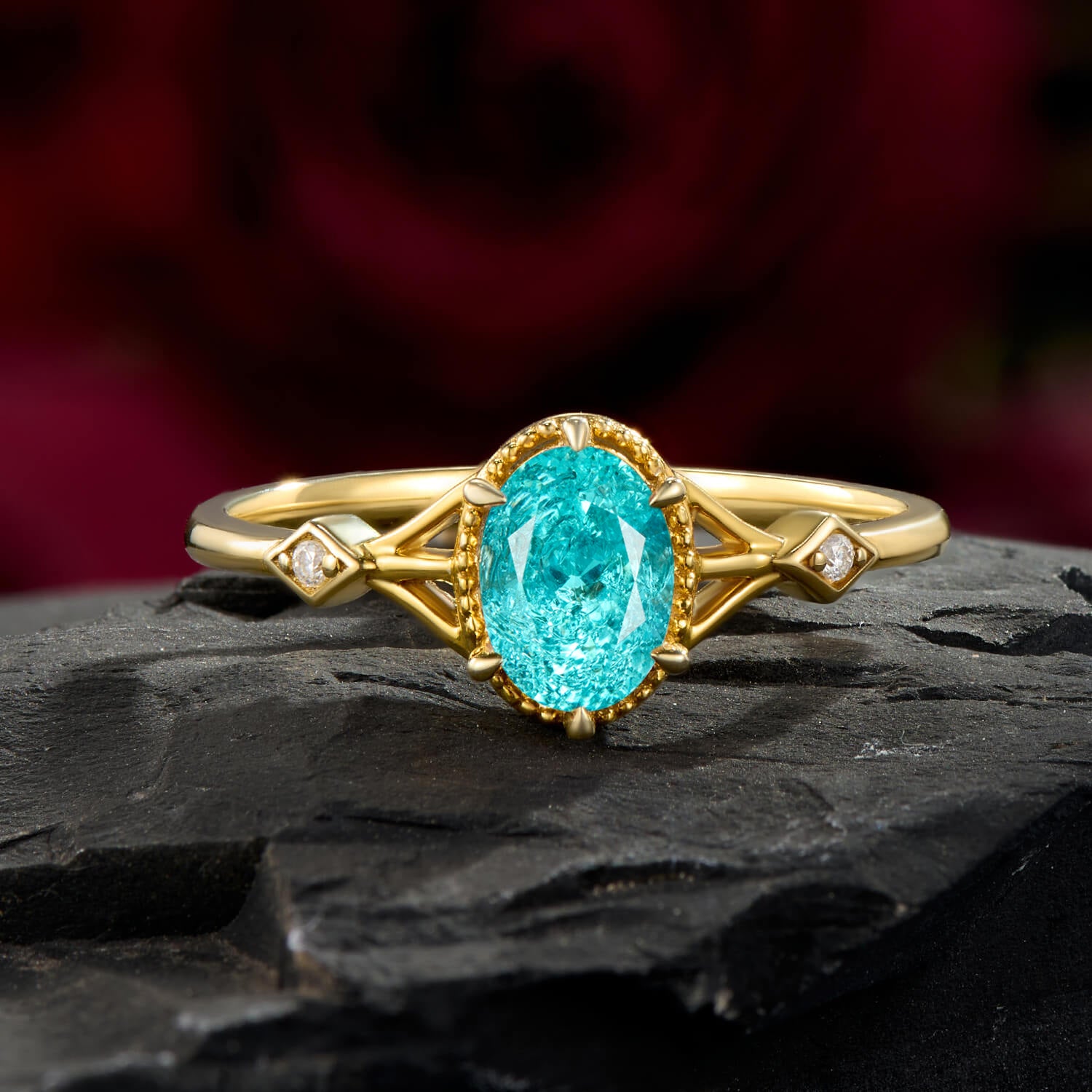 Electric Lagoon Brilliance Oval Cut Paraiba Ring Gold Six-Prong Symmetrical Style Statement Engagement Ring