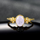 Enchanted Twilight Oval Cut Lavender Garnet Ring in Gold Delicate Clover Style Statement Engagement Ring