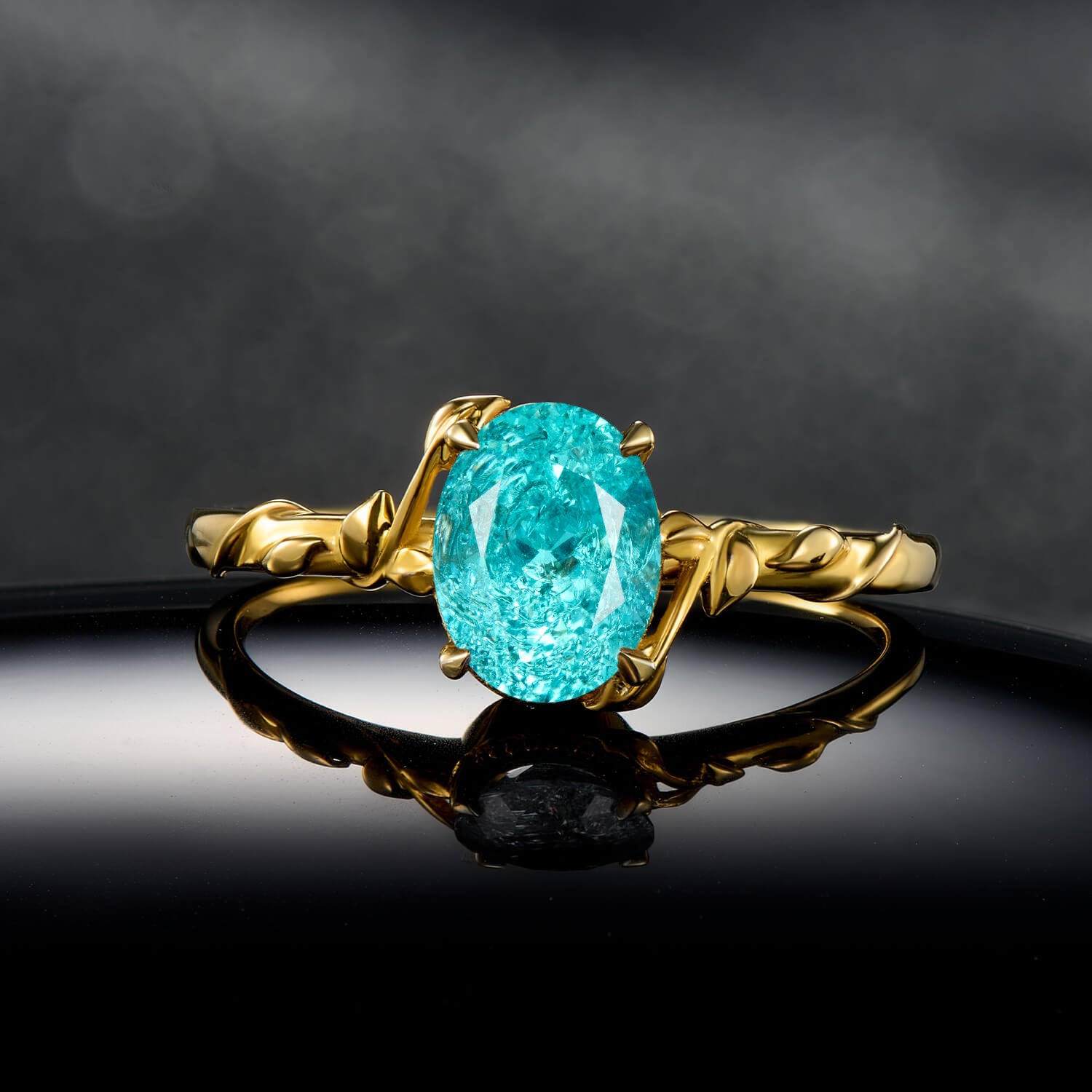 Neon Tide Oval Cut Paraiba Tourmaline Solitaire Ring in Gold Vintage Style Statement Engagement Ring