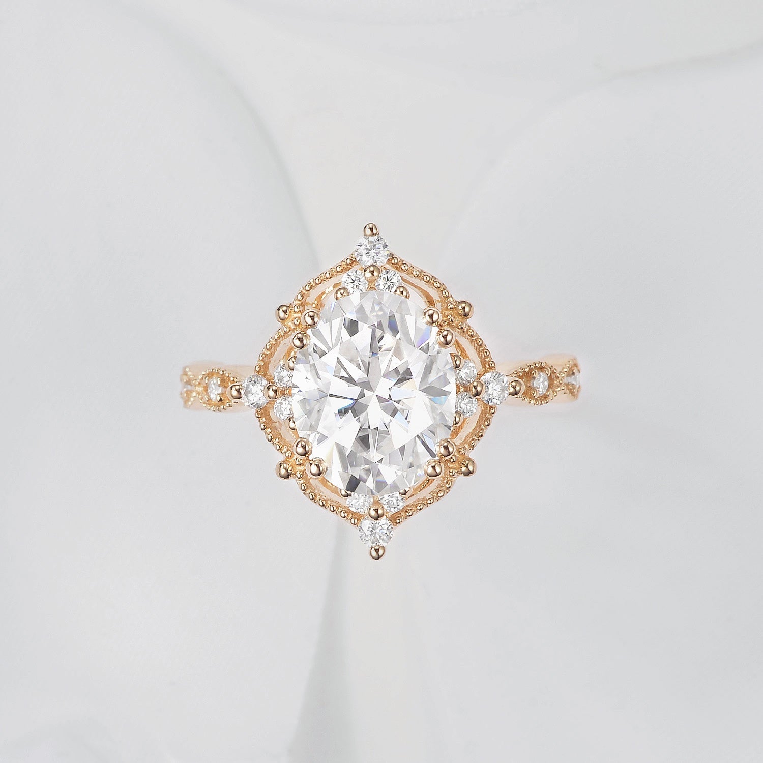Oval Moissanite Vintage Inspired Engagement Ring 18K