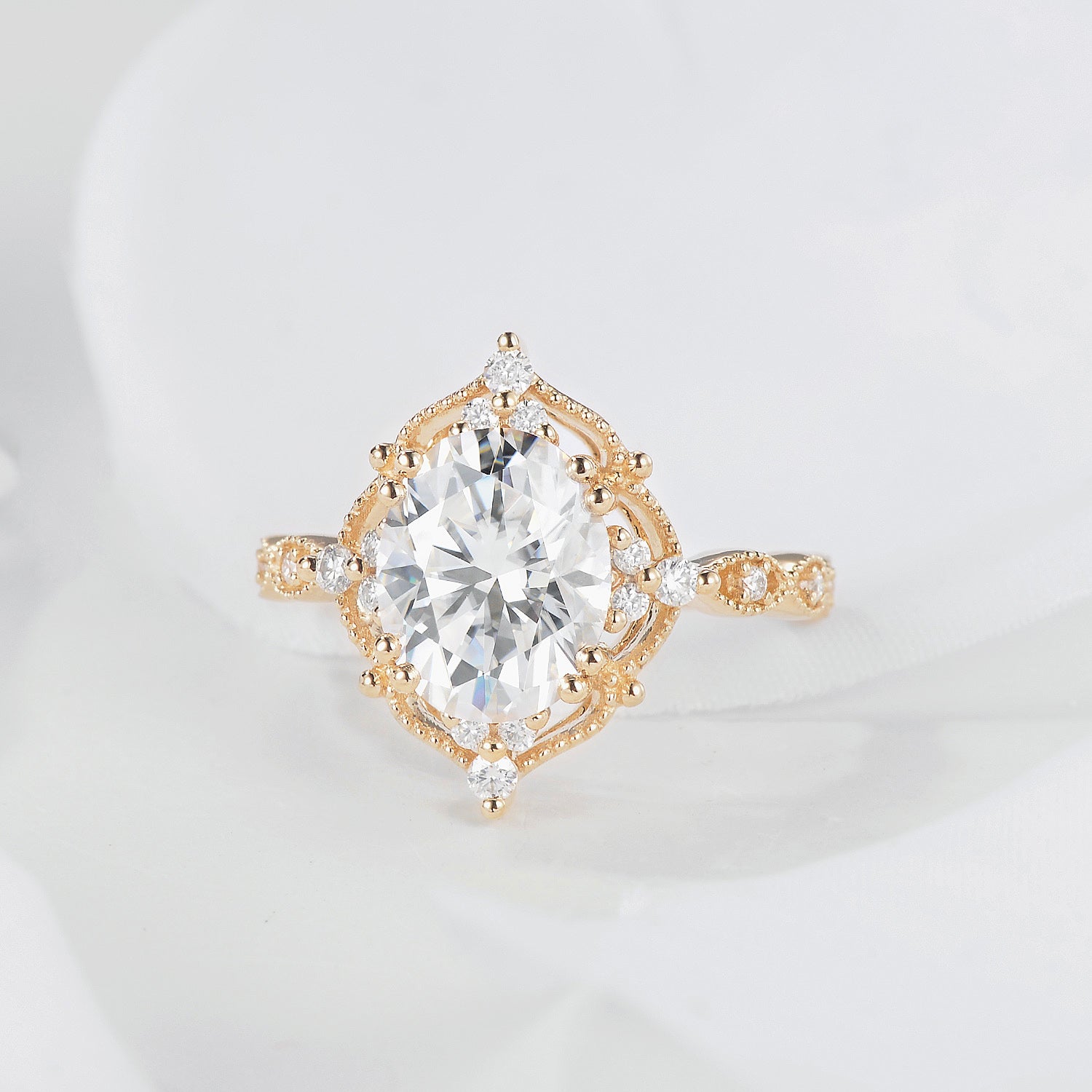 Embrace timeless romance with this Antique Oval Moissanite Engagement Ring, designed for those who are drawn to vintage elegance and refined detail.