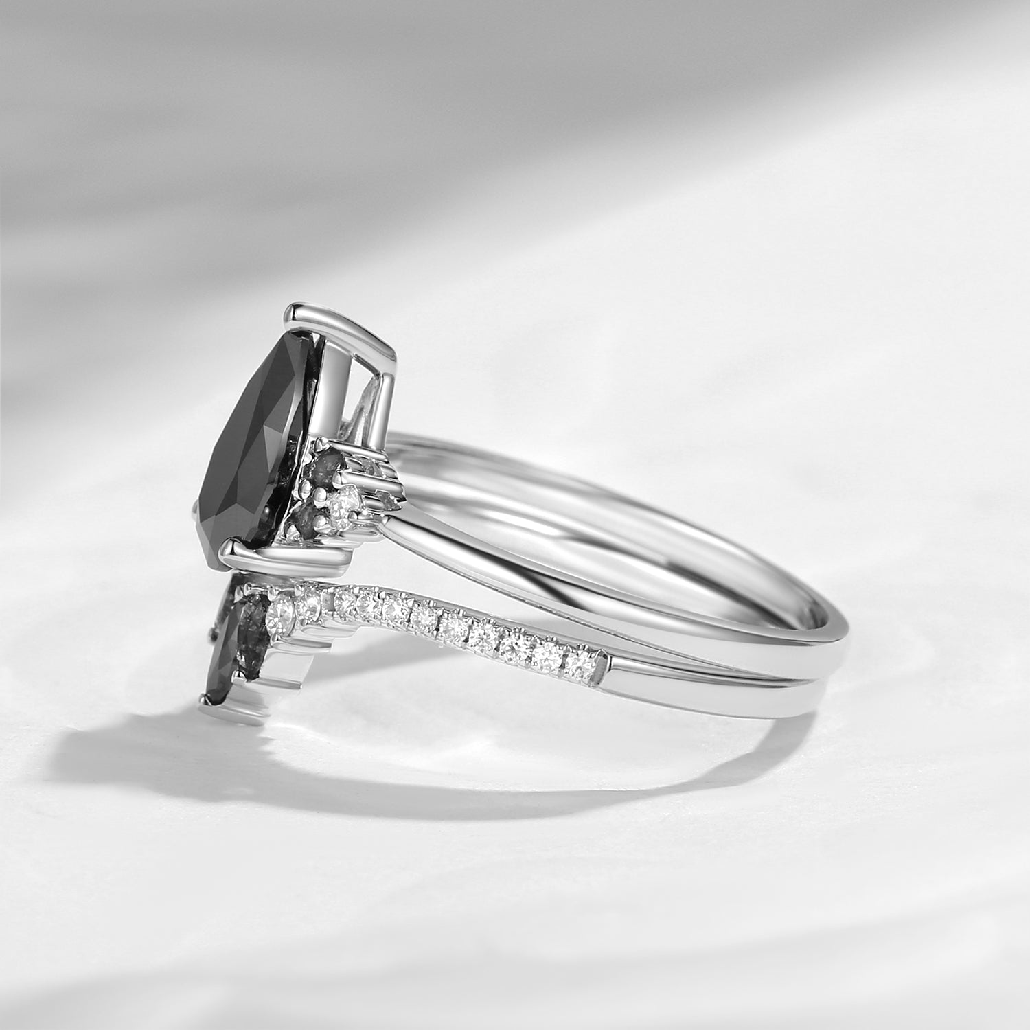 Unique Pear Cut Black Moissanite Cluster Engagement Ring Set 2pcs - Vivian