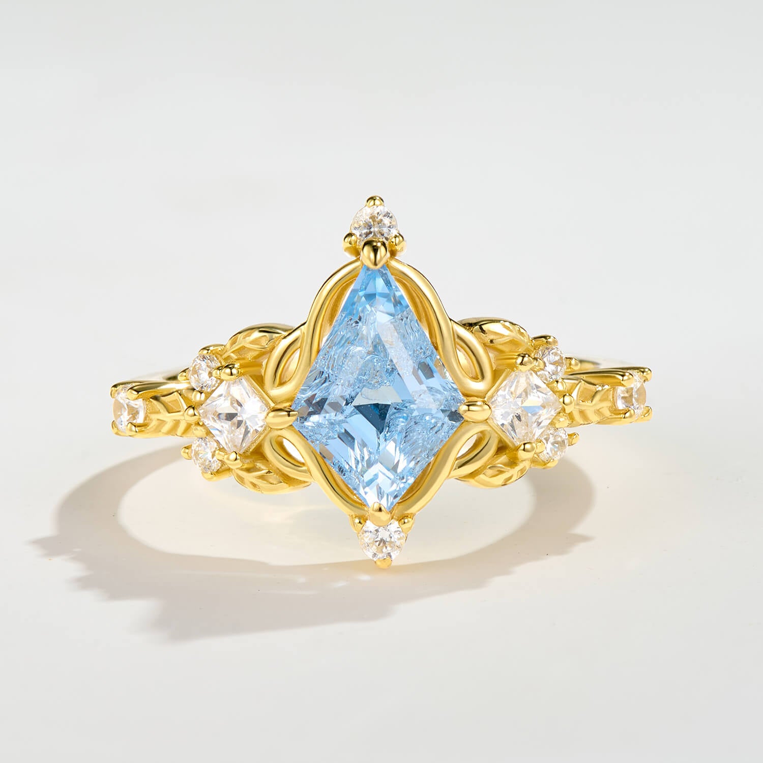 Ethereal Crest Kite Cut Aquamarine Yellow Gold Engagement Ring