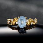 Ethereal Oval Cut Aquamarine Ring in Gold Branch Style Elegant Statement Engagement Ring