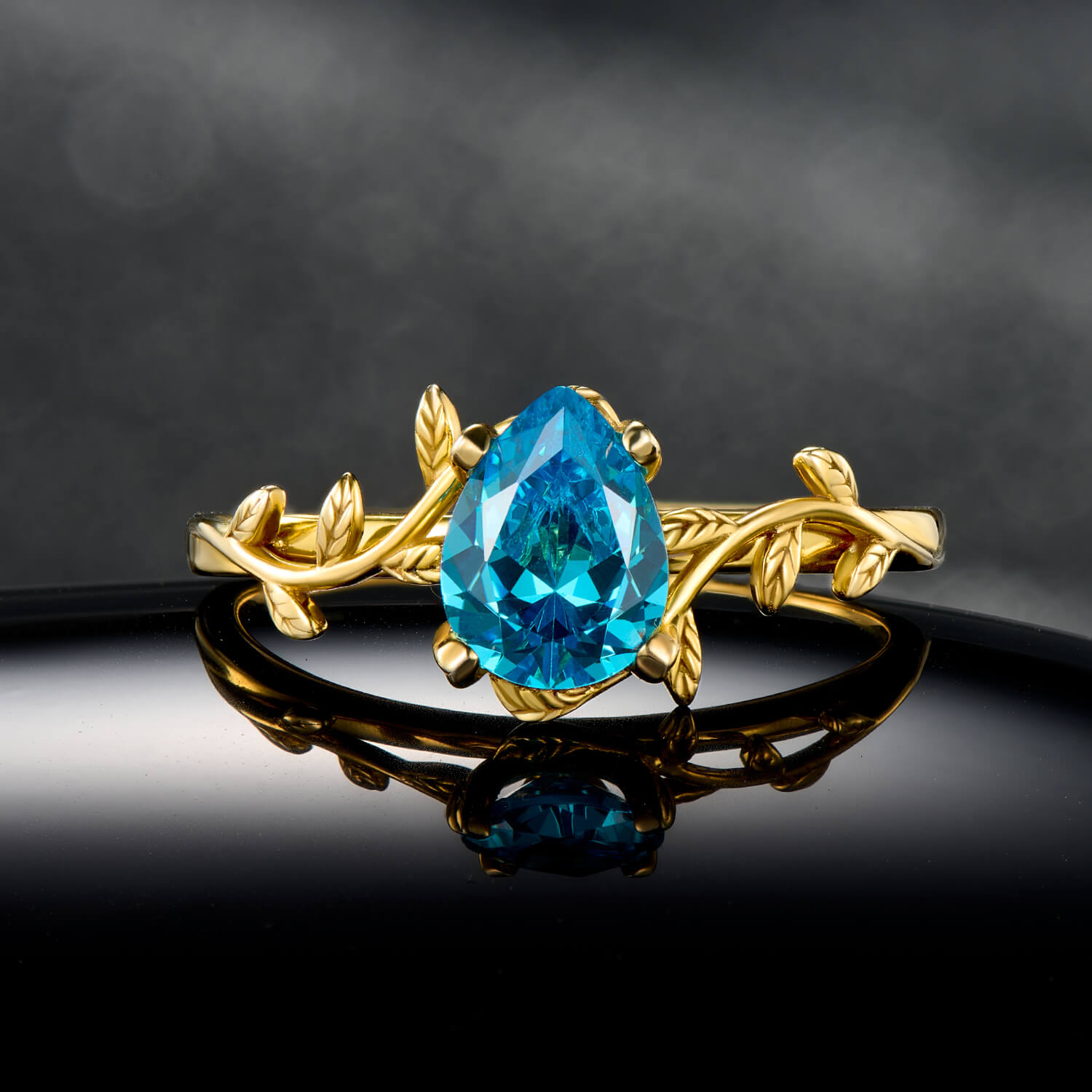 Ethereal Pear Cut Aquamarine Ring in Gold Branch Style Elegant Statement Engagement Ring