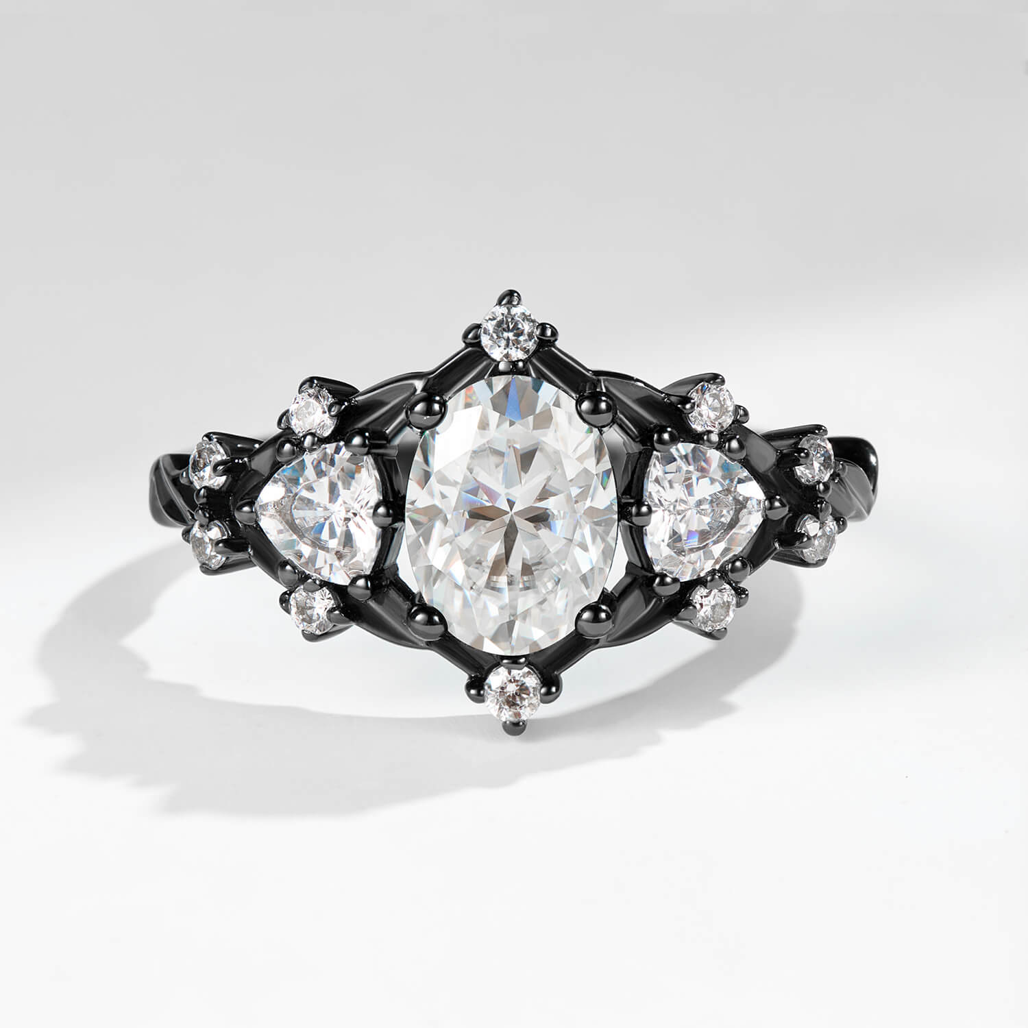 Mystic Oval Cut Moissanite Black Gold Engagement Ring