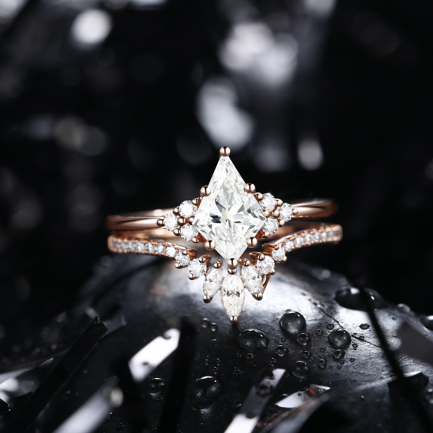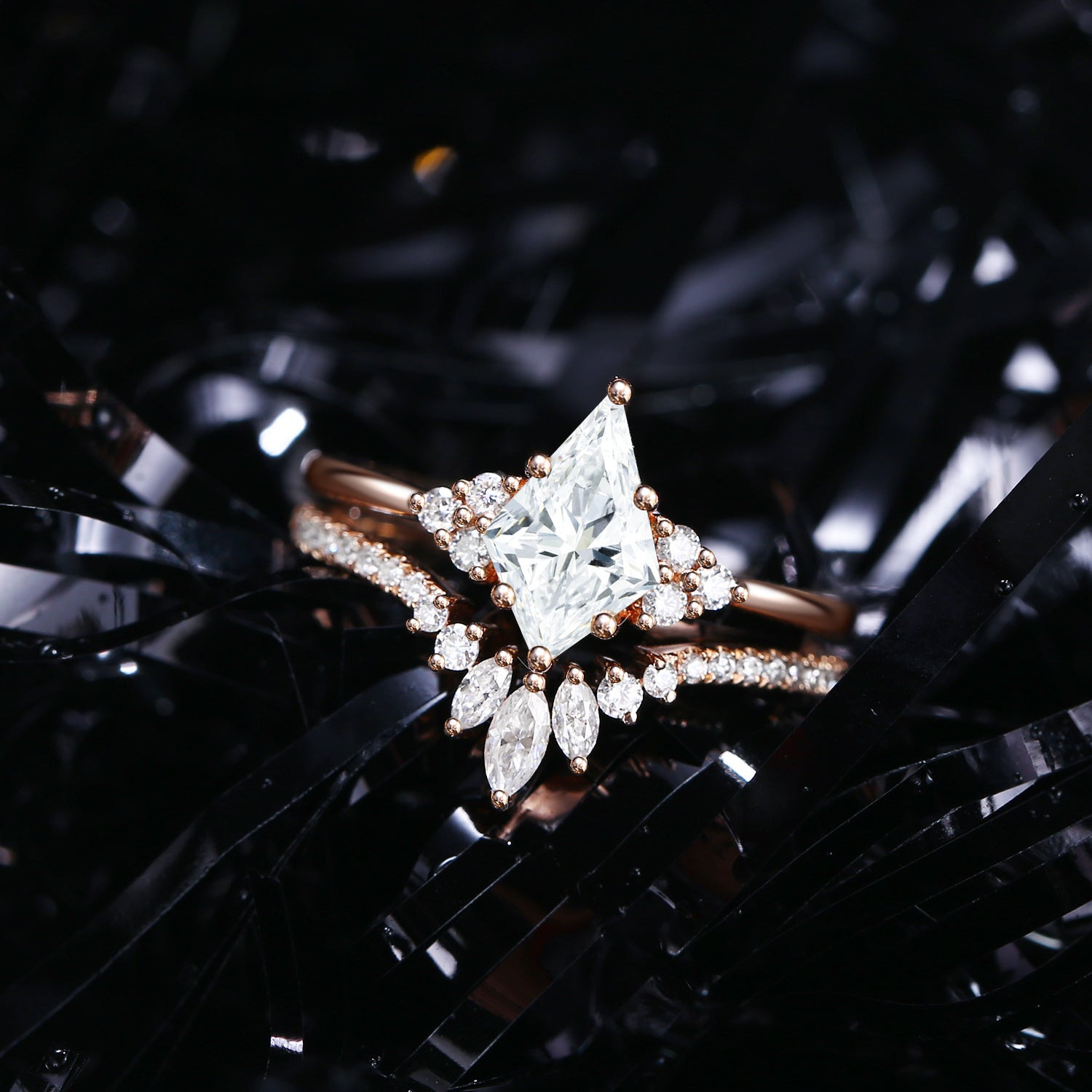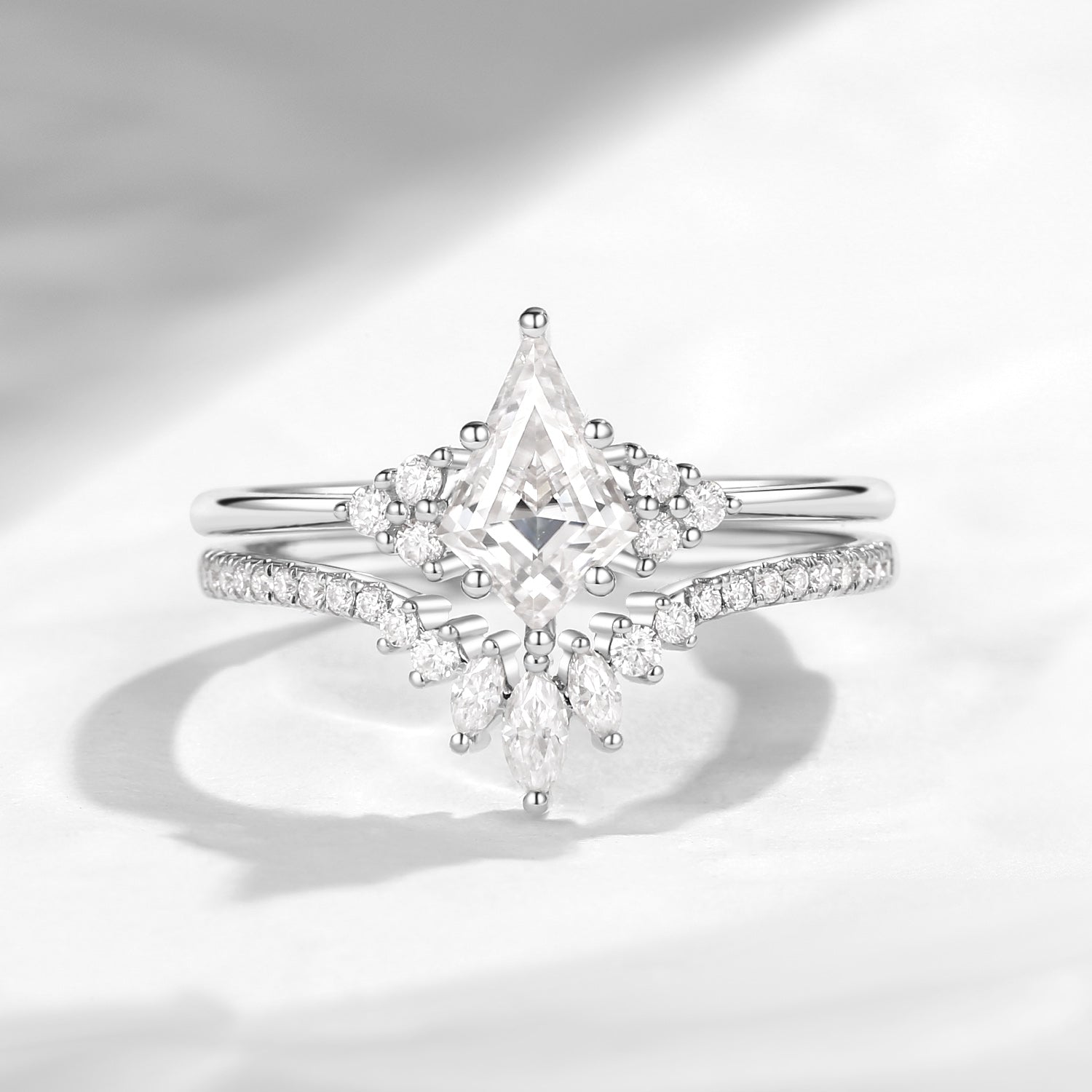 Kite Cut Moissanite Engagement Ring Set 2pcs - Electra