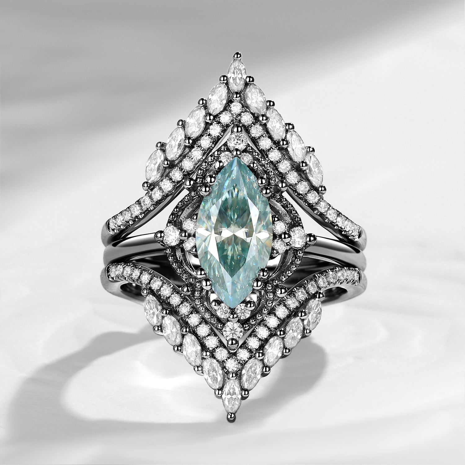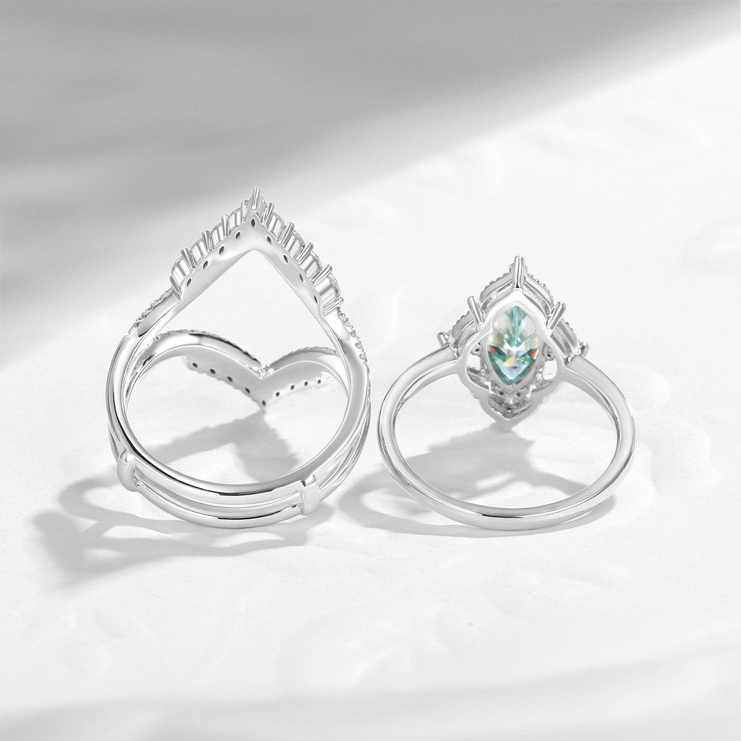 Vintage Style Marquise Mint Moissanite Cage Ring Bridal Set 2pcs