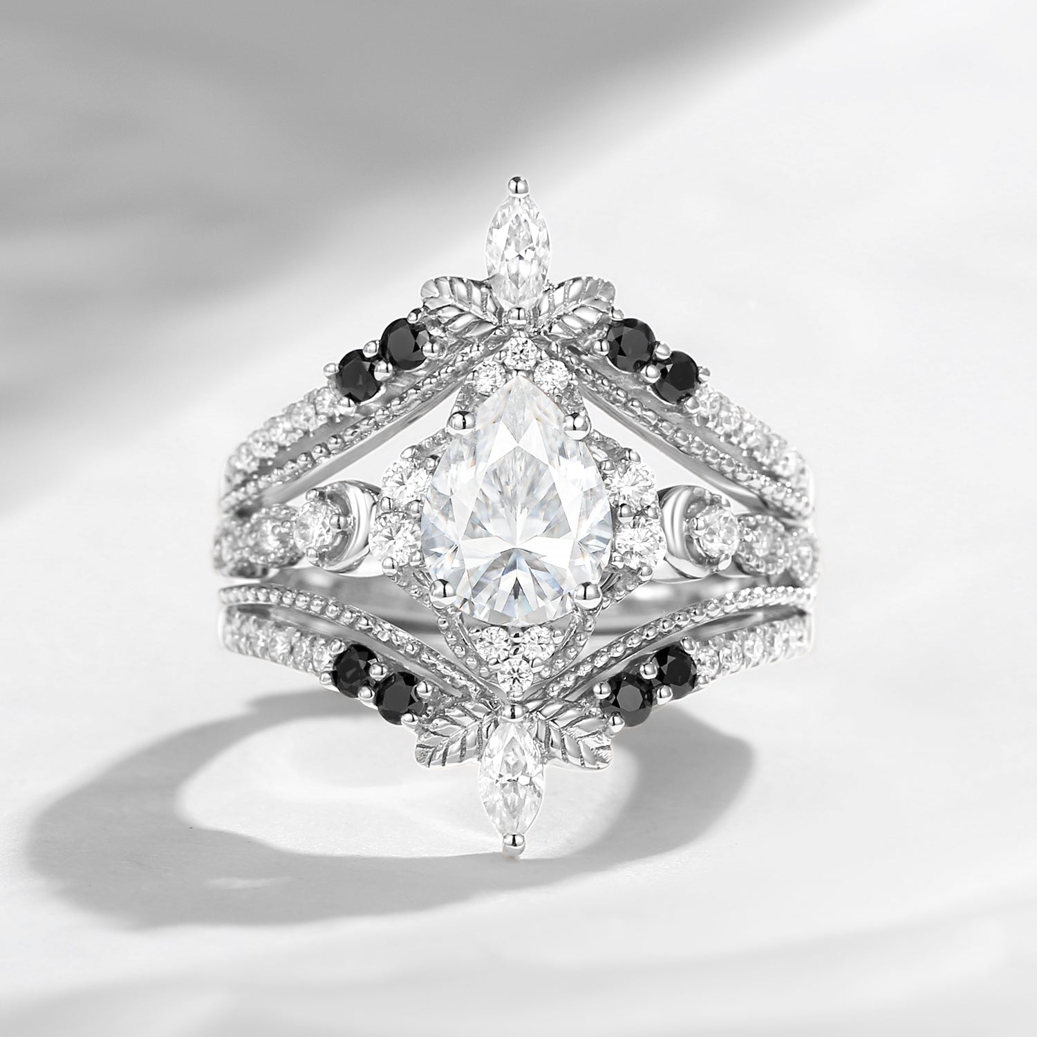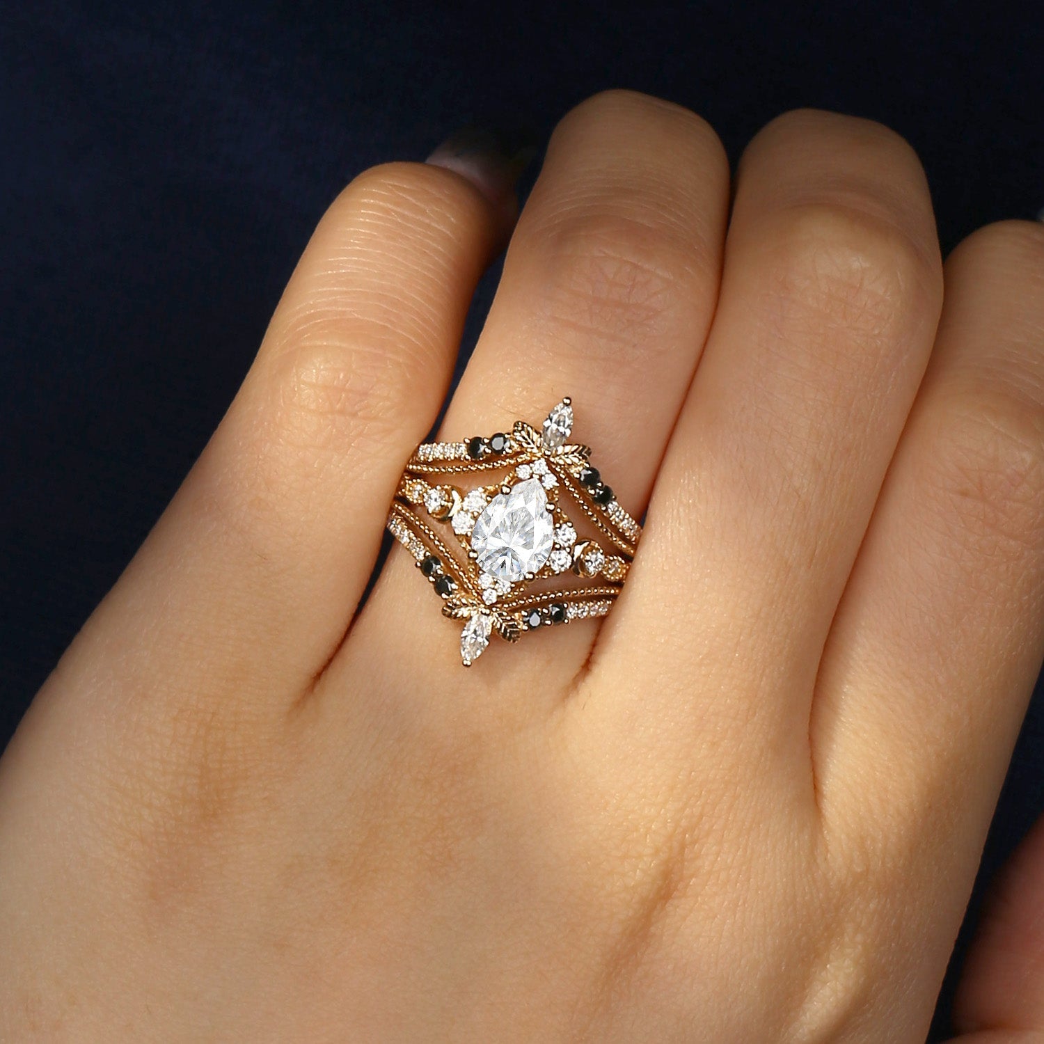 Pear Cut Vintage Inspired Moissanite Ring Set 2pcs - Maximalist Style Cage Ring