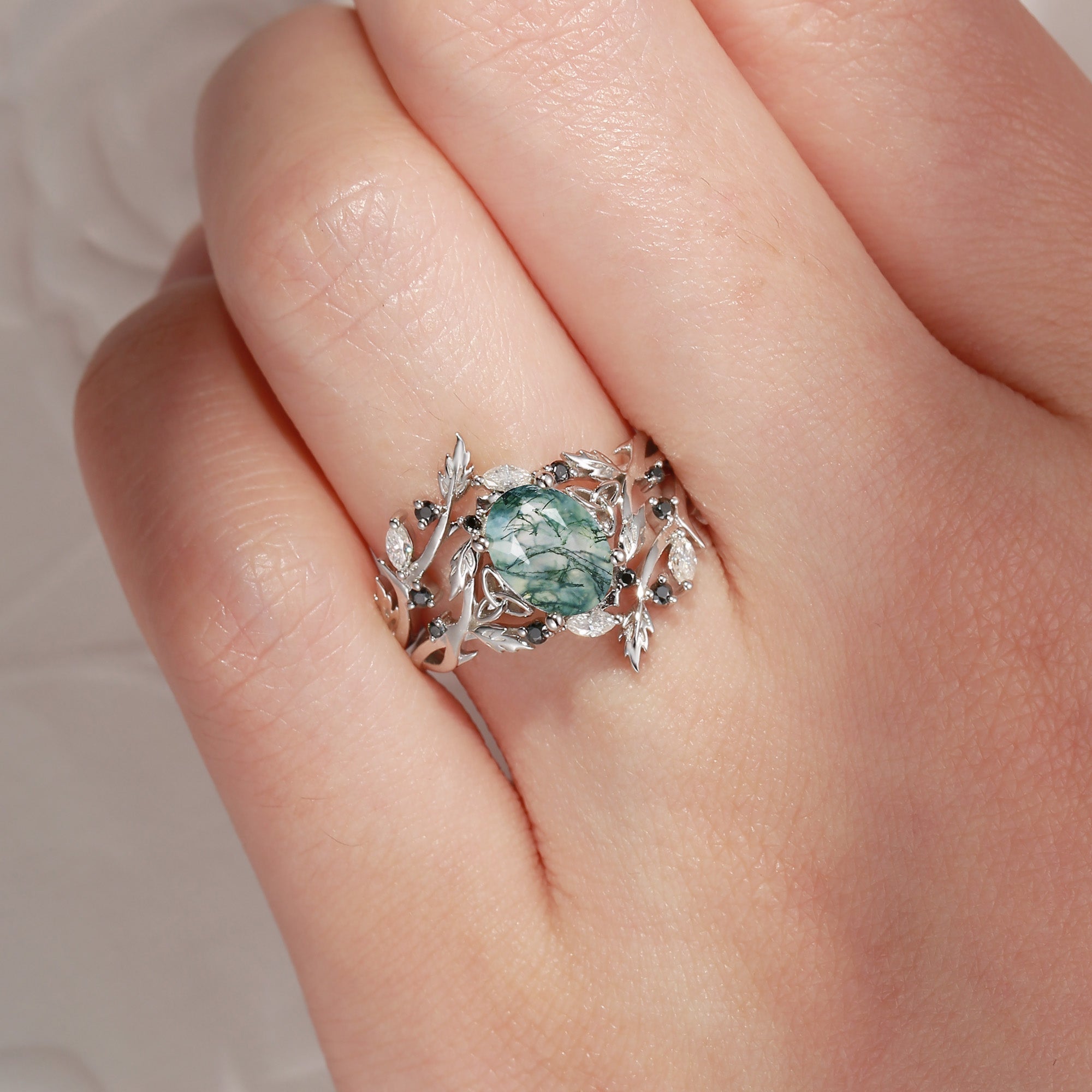 Whether chosen as an engagement ring, a symbol of renewal, or a tribute to nature’s quiet wisdom, this Celtic Calendar moss agate ring is more than jewelry—it is a wearable connection to the earth, the seasons, and the ancient stories written in nature itself.