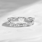 At its center lies a radiant moissanite, shimmering with exceptional brilliance and fire that symbolizes love, devotion, and emotional connection. Framed by a refined pavé-accented band with flowing, vintage-inspired details, this ring captures the essence of classic romance and graceful femininity.