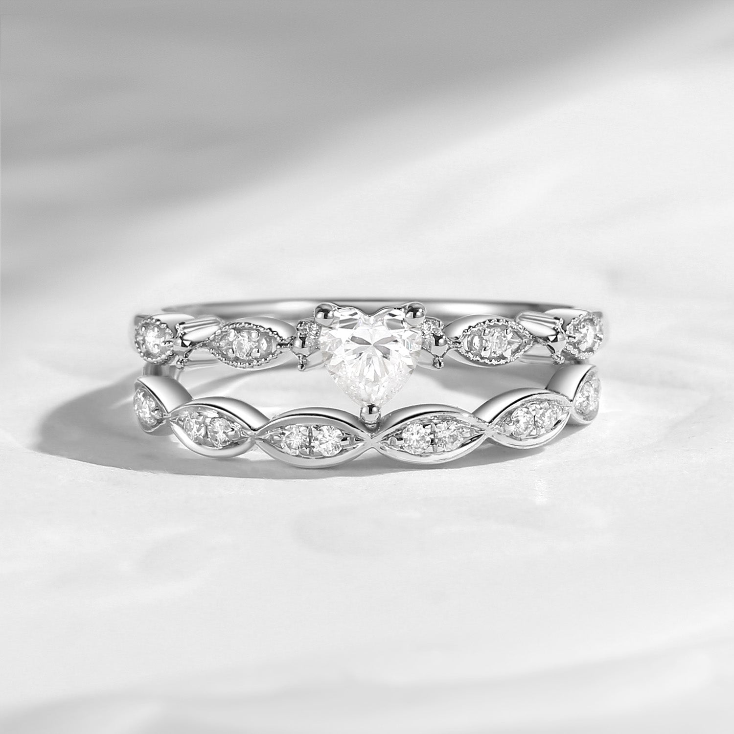 Dainty Heart Shaped Moissanite Classic Promise Ring Set 2pcs