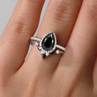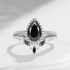 Pear Shaped Black Moissanite Engagement Ring Set