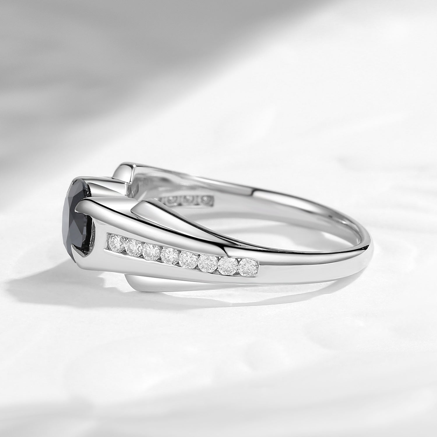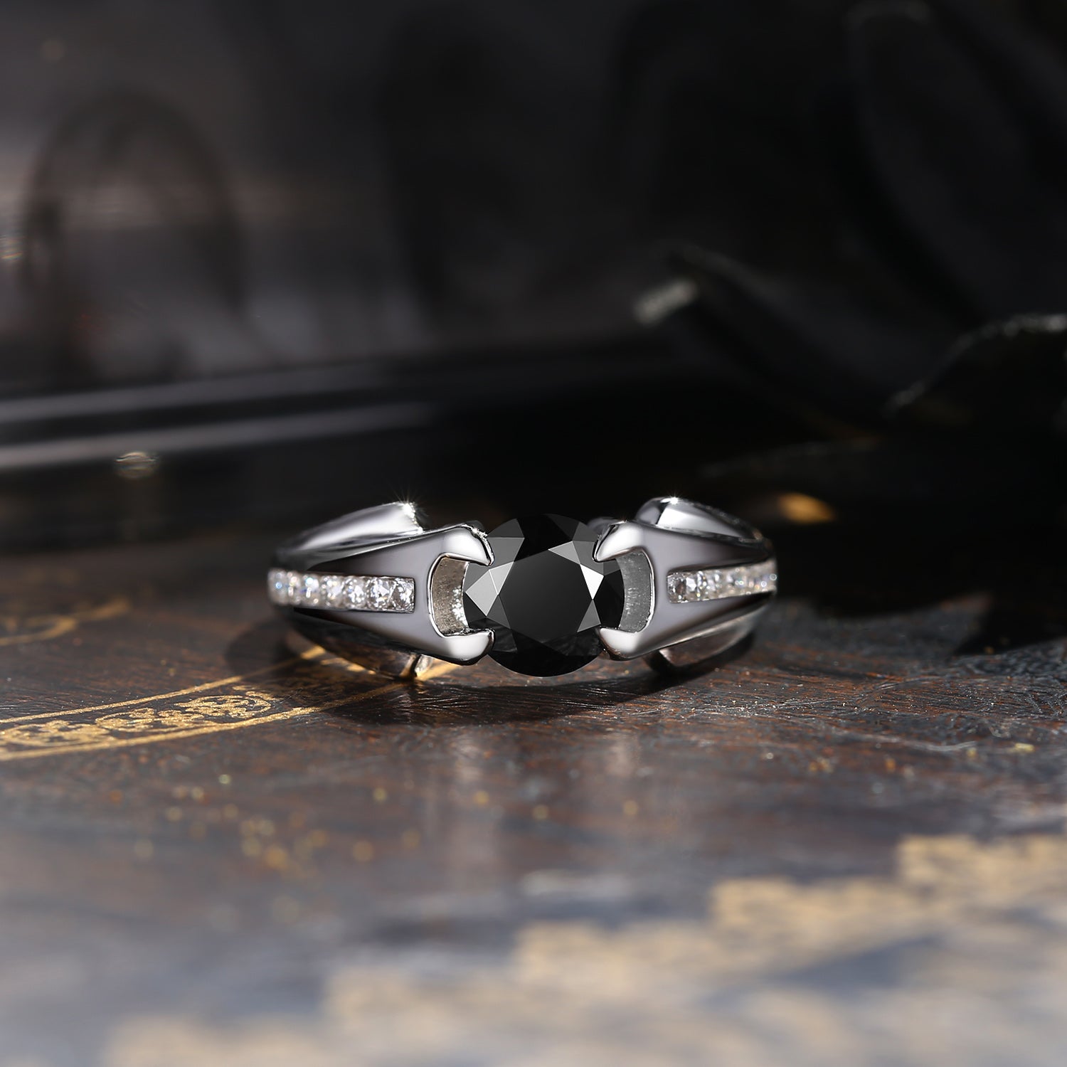 Round Black Moissanite Men's Ring Solitaire Wedding Ring