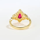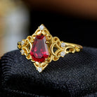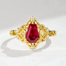 Ornate Coffin Cut Ruby Yellow Gold Engagement Ring