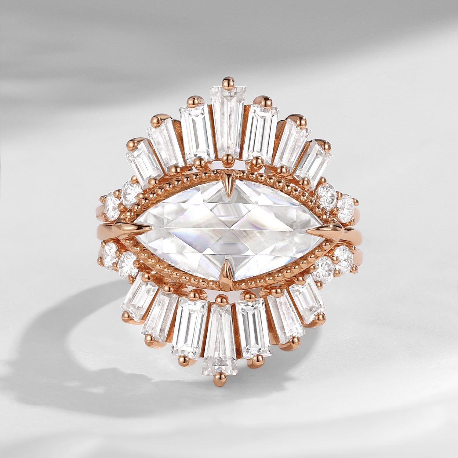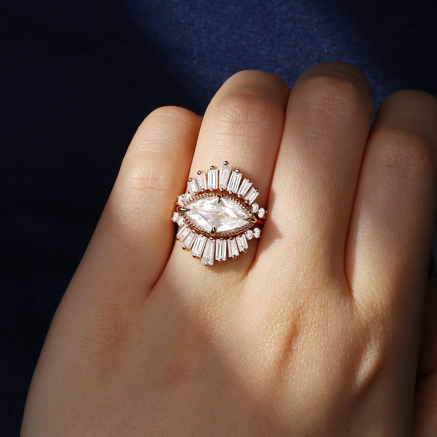 In Stock | Bette‘s Eyes | Marquise Cut Moissanite Halo Evil Eye Ring 3pcs
