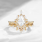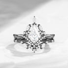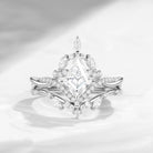 Kite Cut Moissanite Nature Inspired Cluster Engagement Ring Set 2pcs