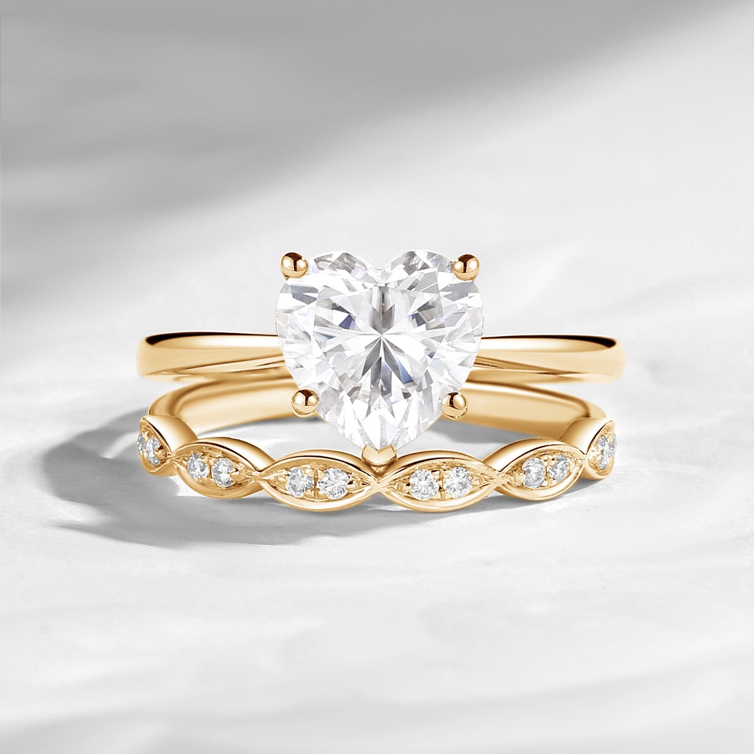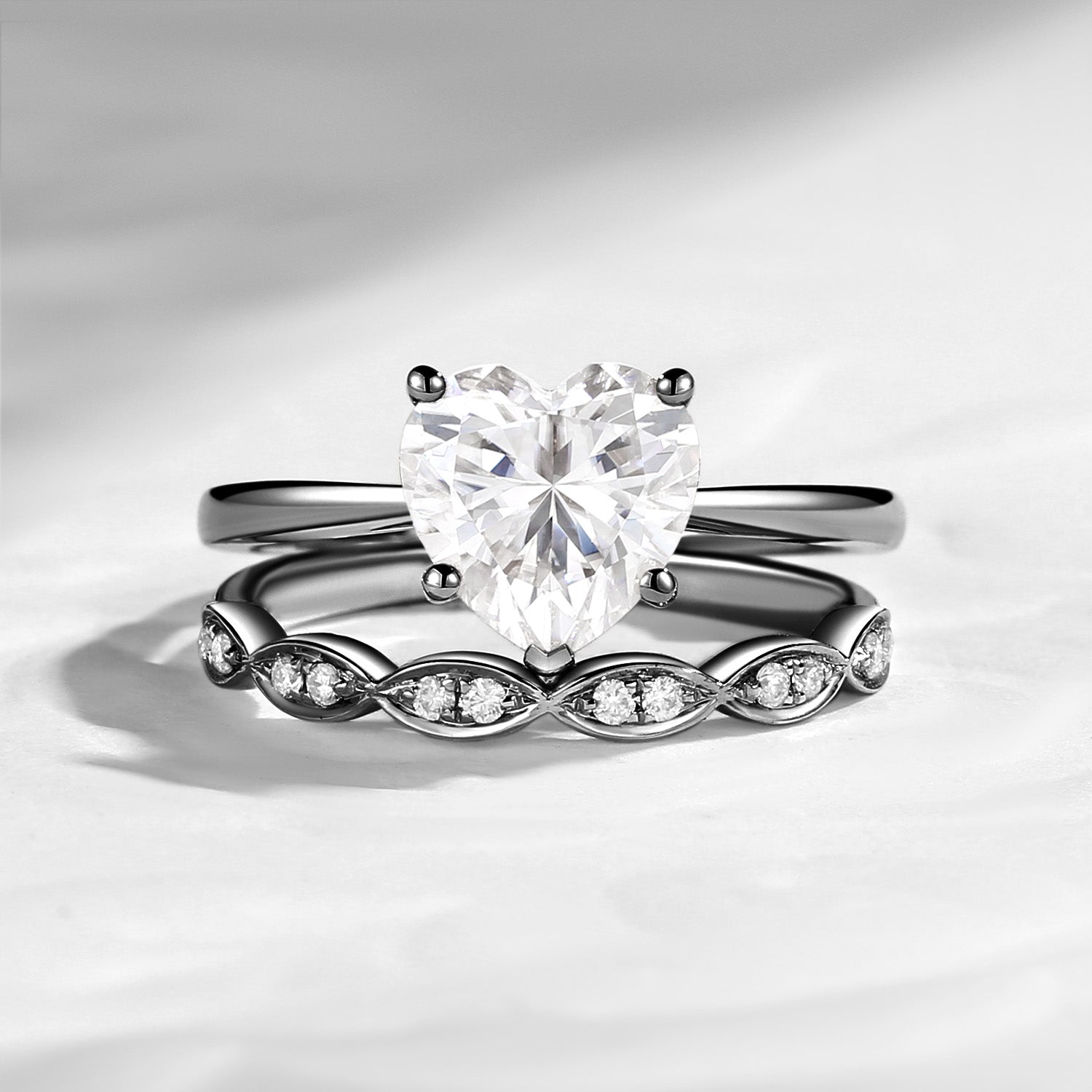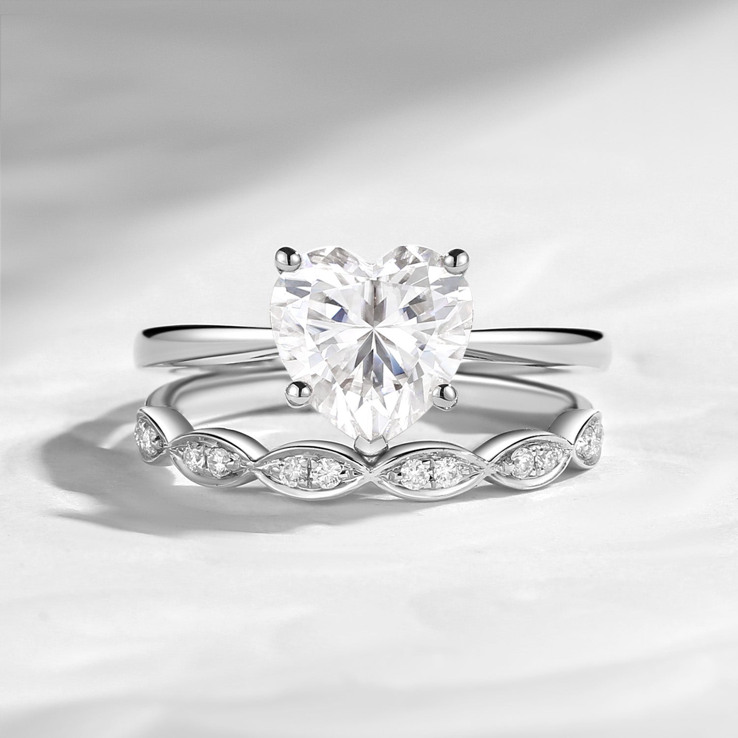 Unique Heart Shaped Solitare Moissanite Engagement Ring 2pcs Set