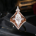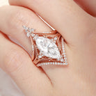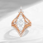 Embrace refined brilliance with this Marquise Cut Moissanite Ring, crafted in elegant rose gold tones and designed for those who appreciate classic luxury with a touch of vintage romance.