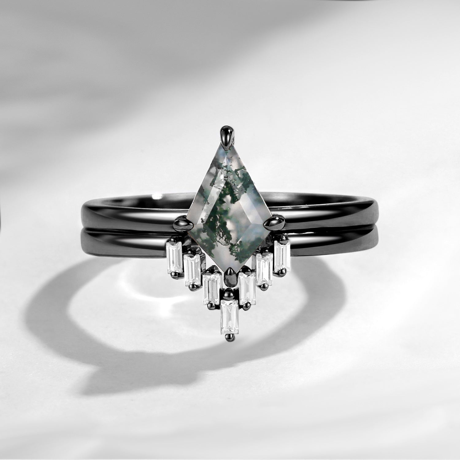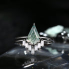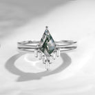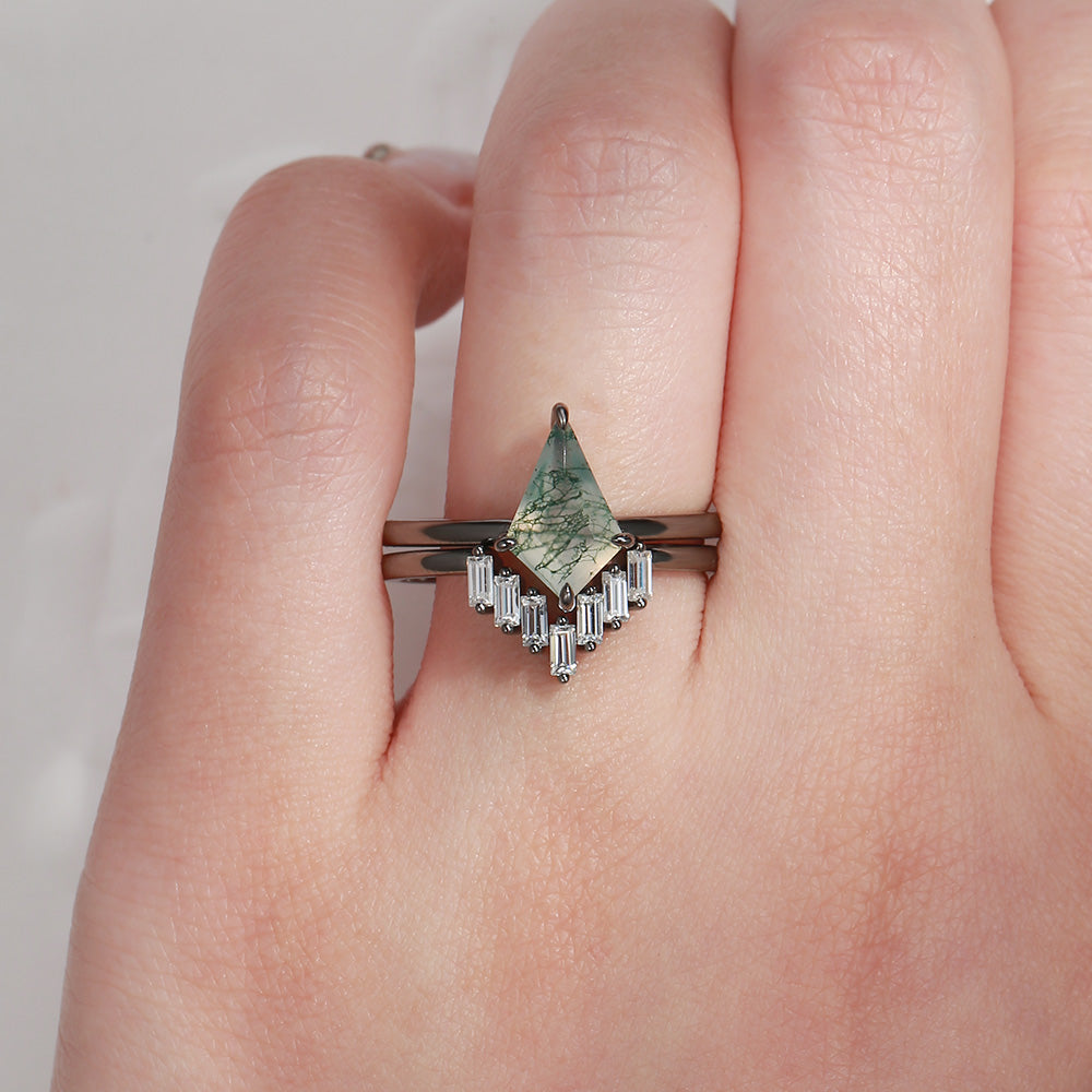 Classic Kite Cut Moss Agate Engagement Ring 2pcs