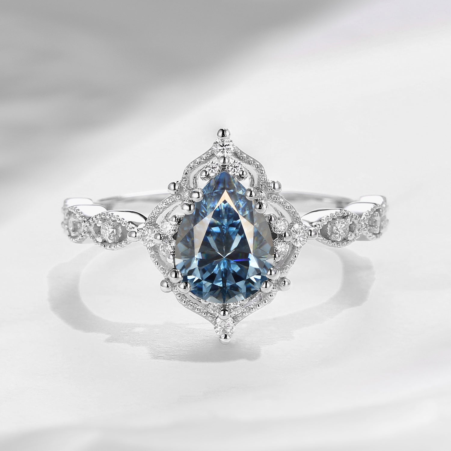 Vintage Pear Shaped Royal Blue Moissanite Engagement Ring