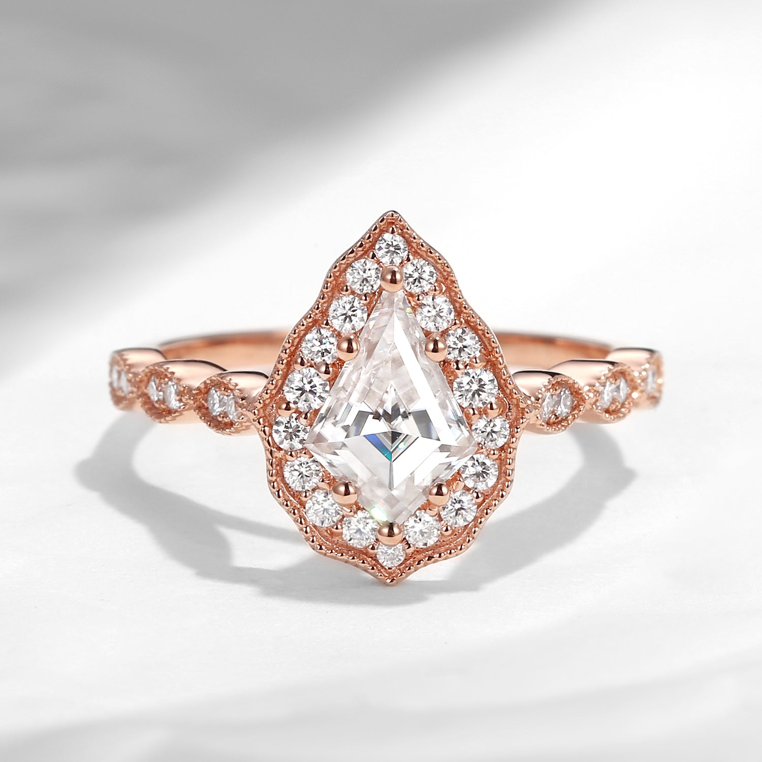 Unique Kite Cut Moissanite Engagement Halo Ring