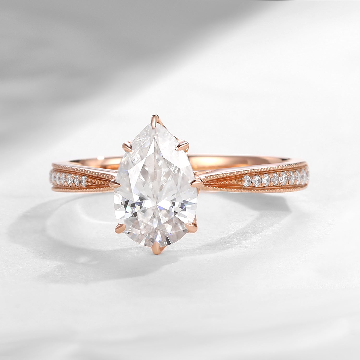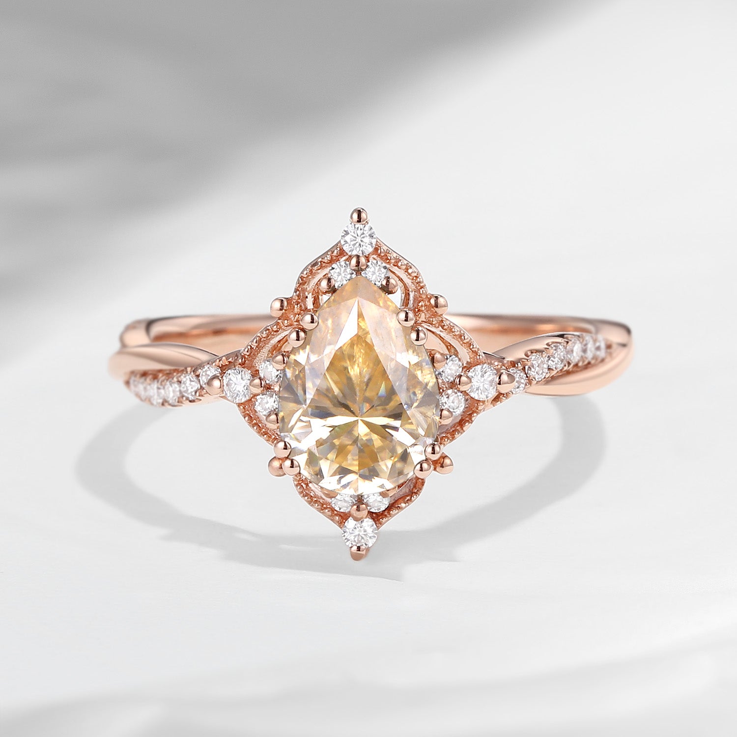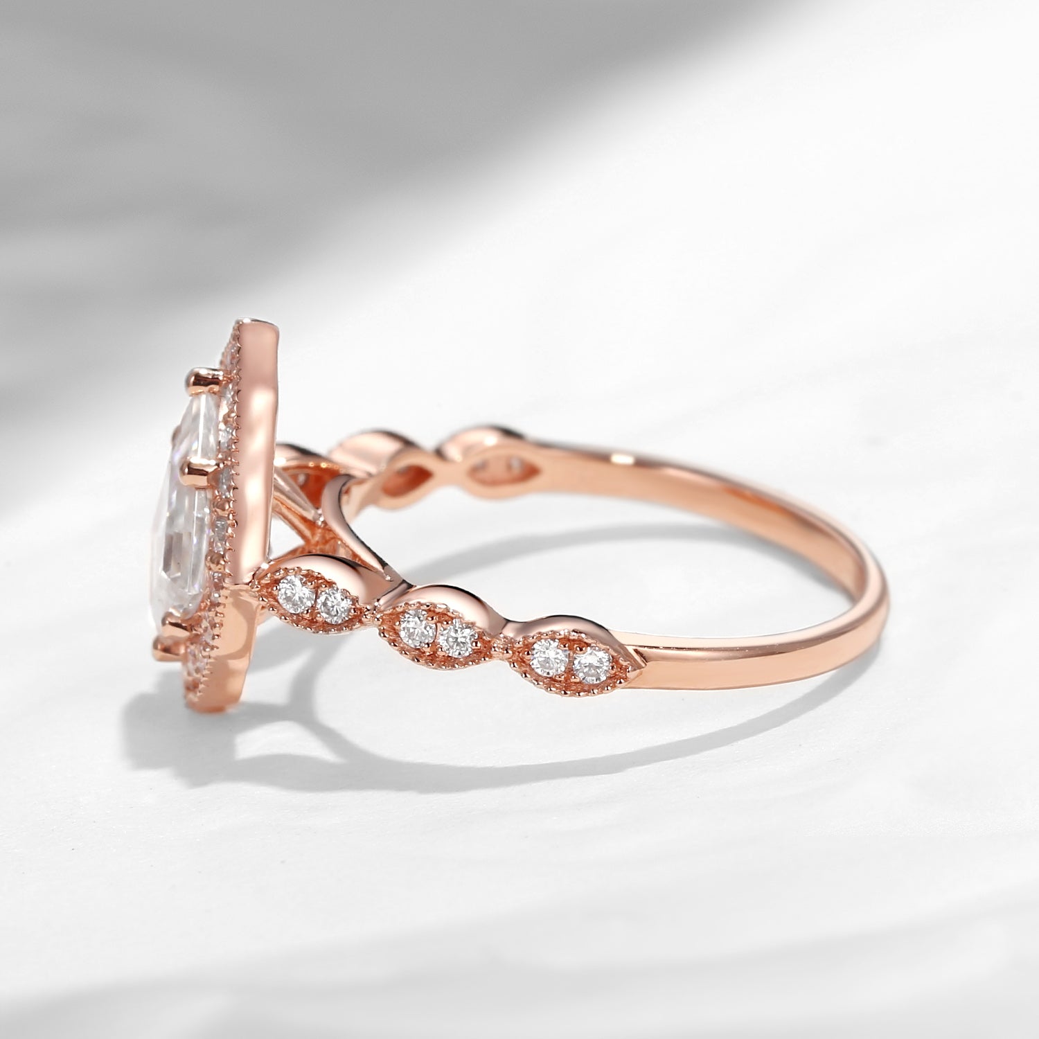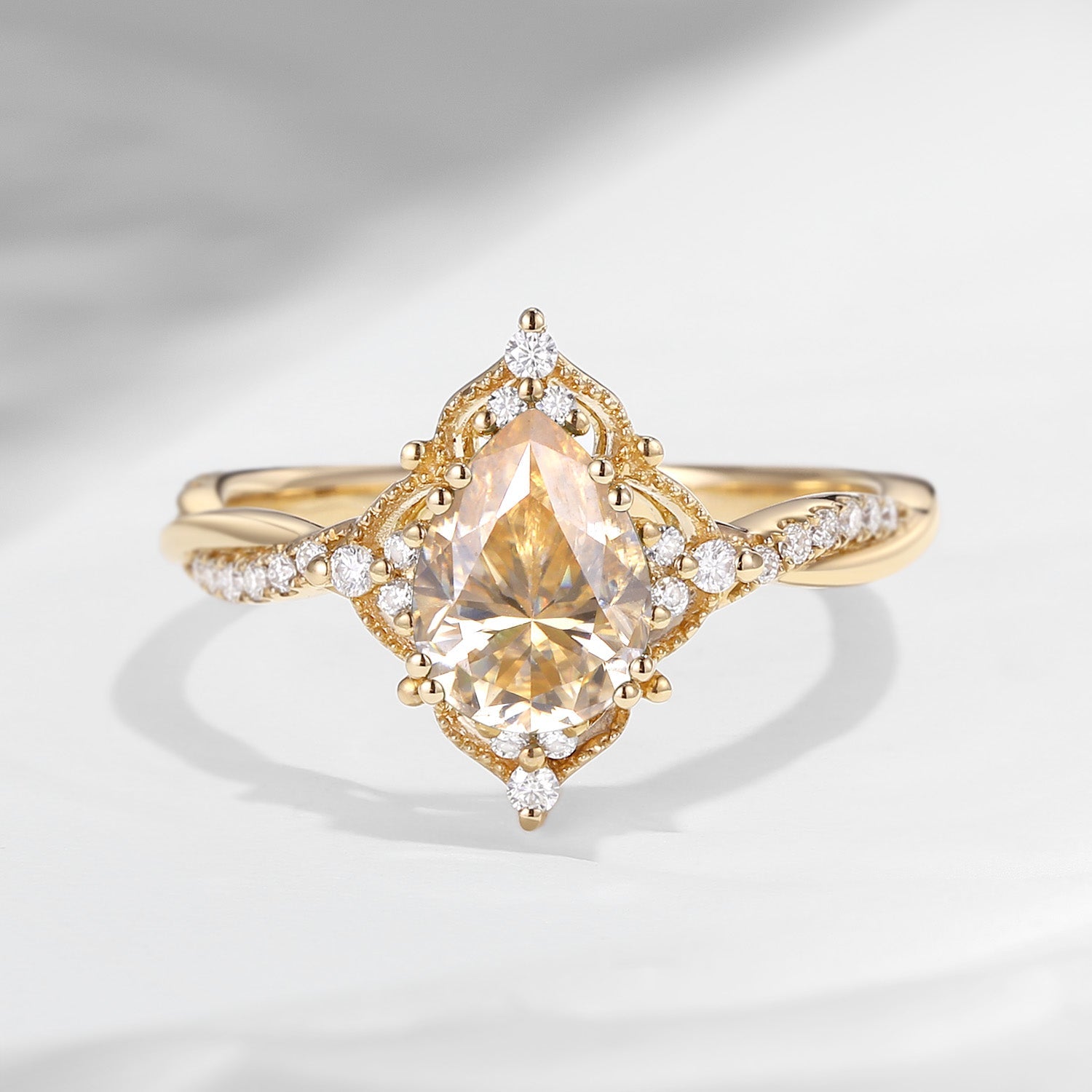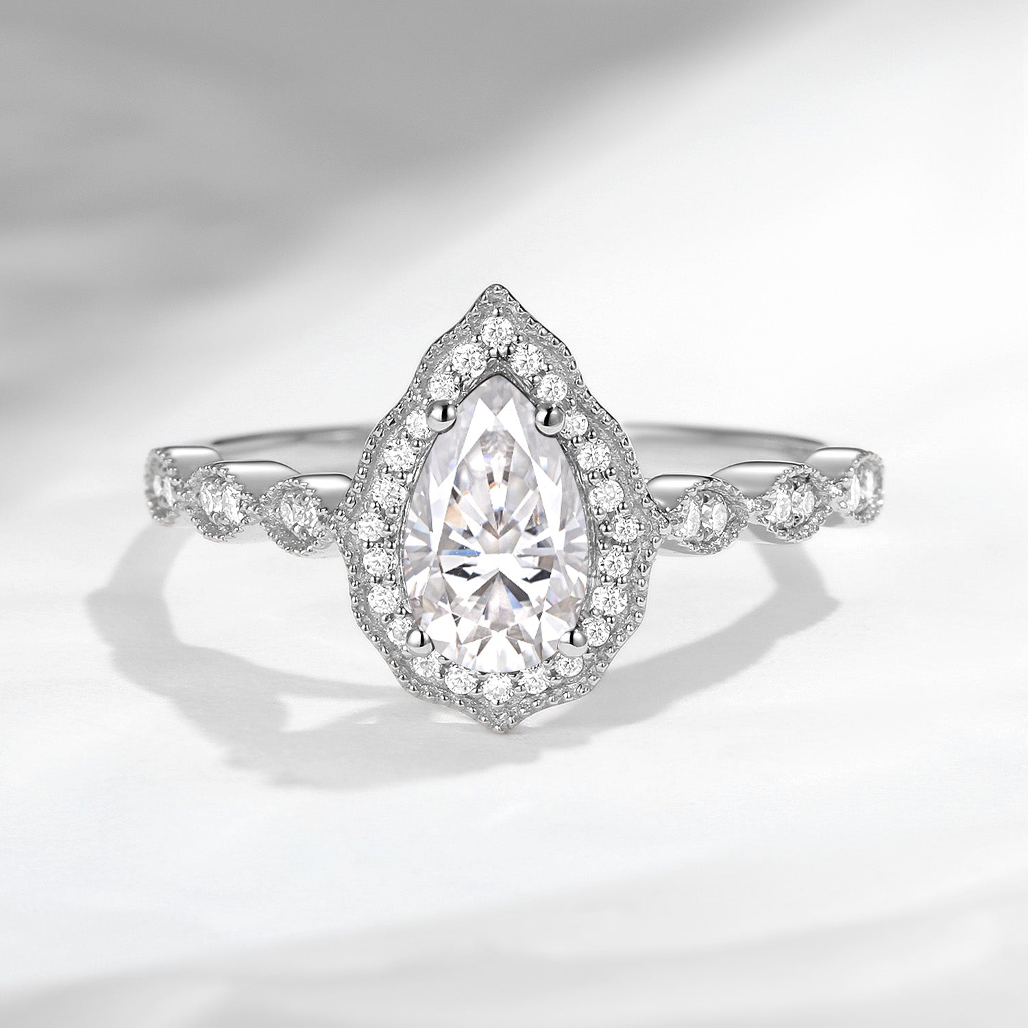 Vintage Pear Cut Moissanite Engagement Halo Ring