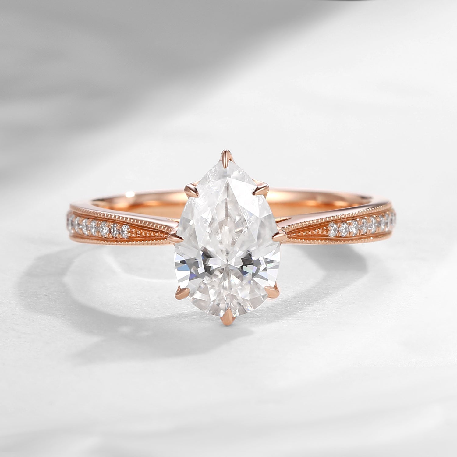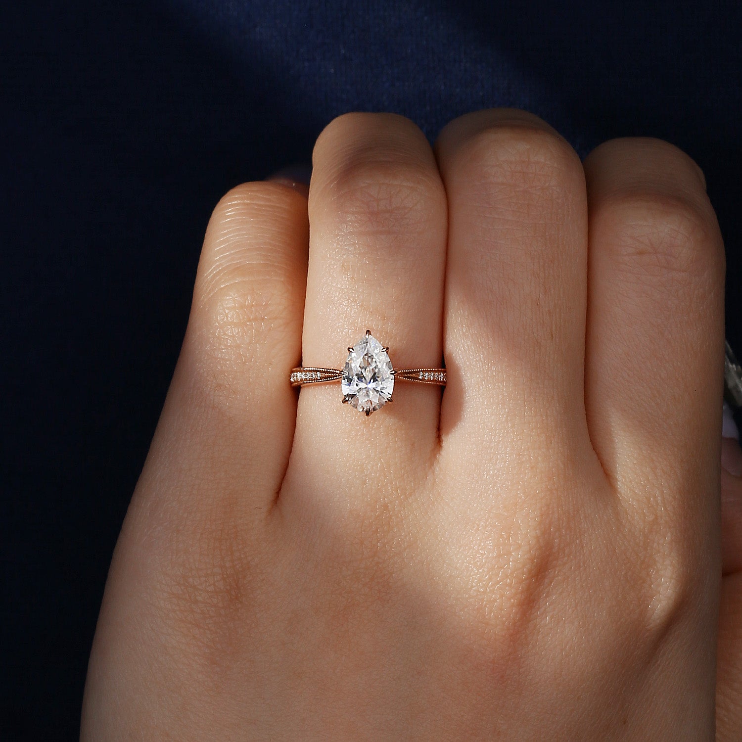 Pear Shaped Moissanite Solitaire Engagement Ring