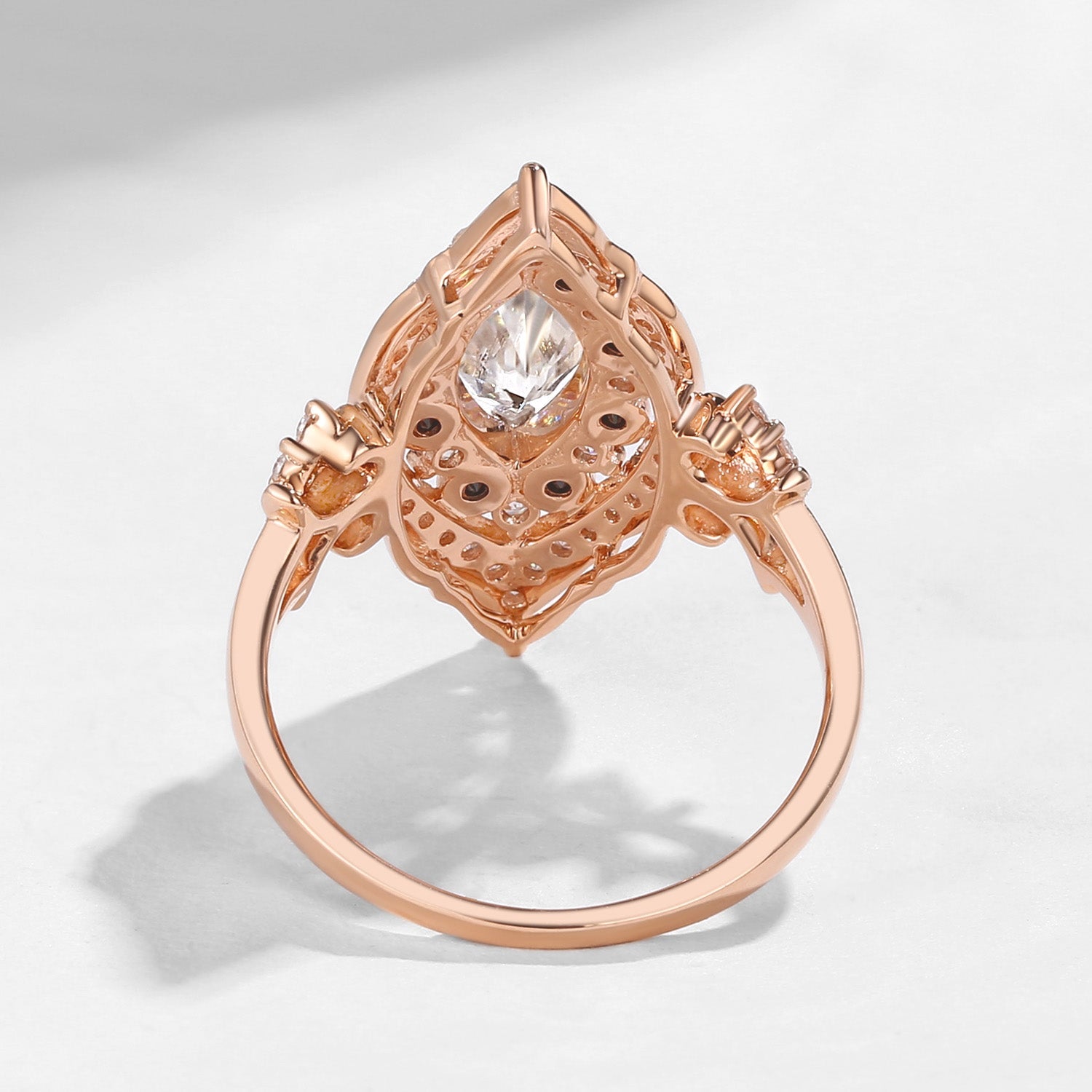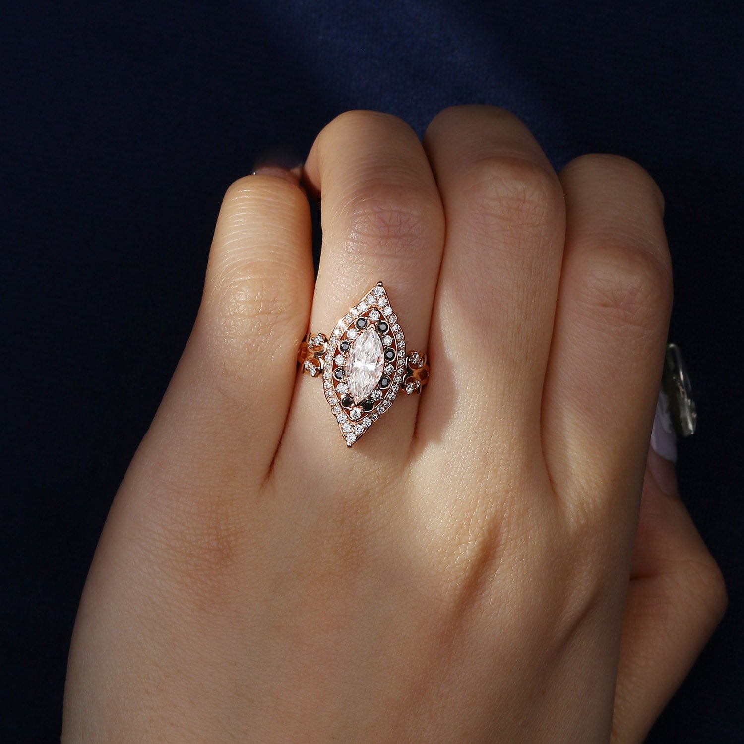 Maximalist Style Vintage Inspired Marquise Cut Moissanite Engagement Ring