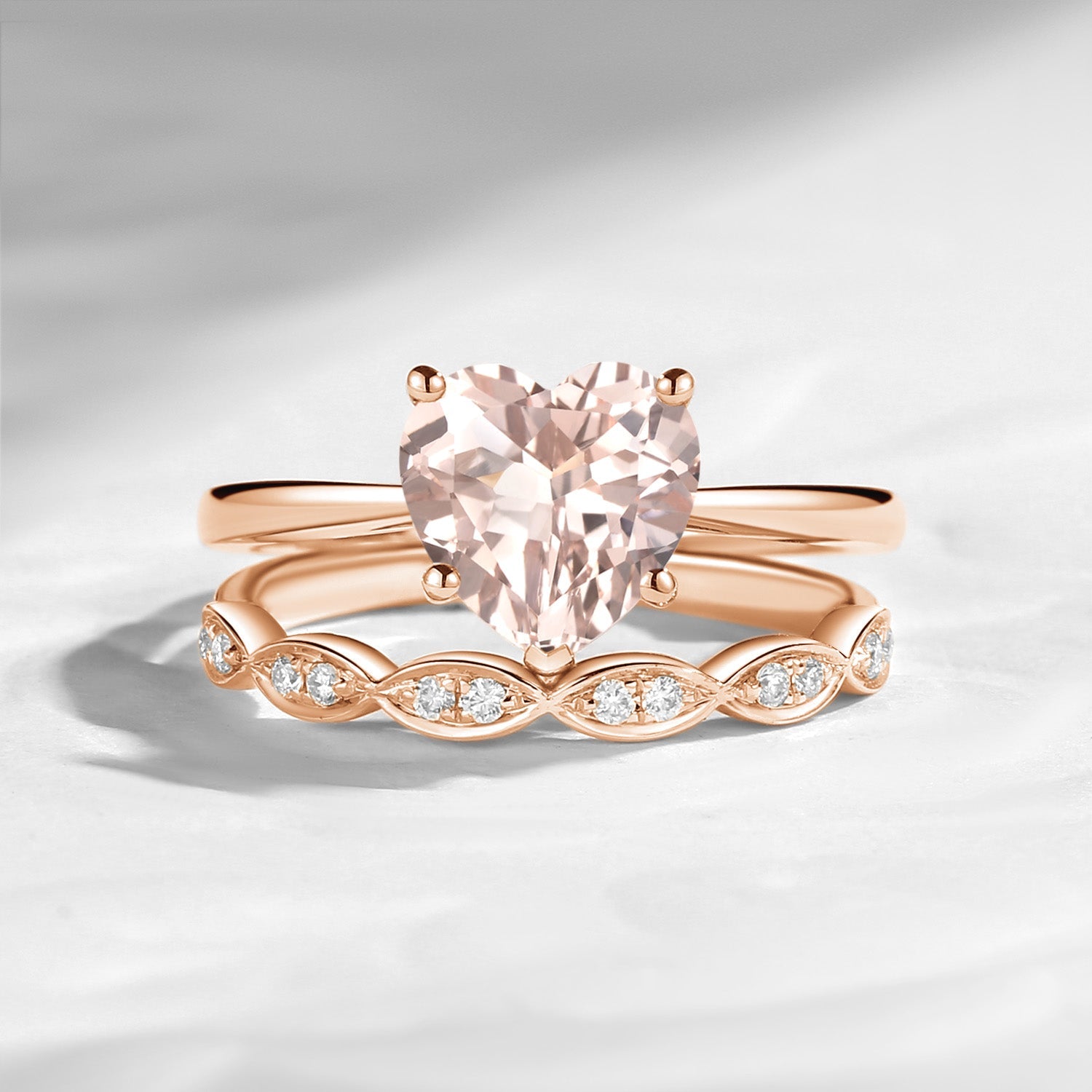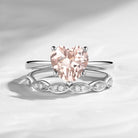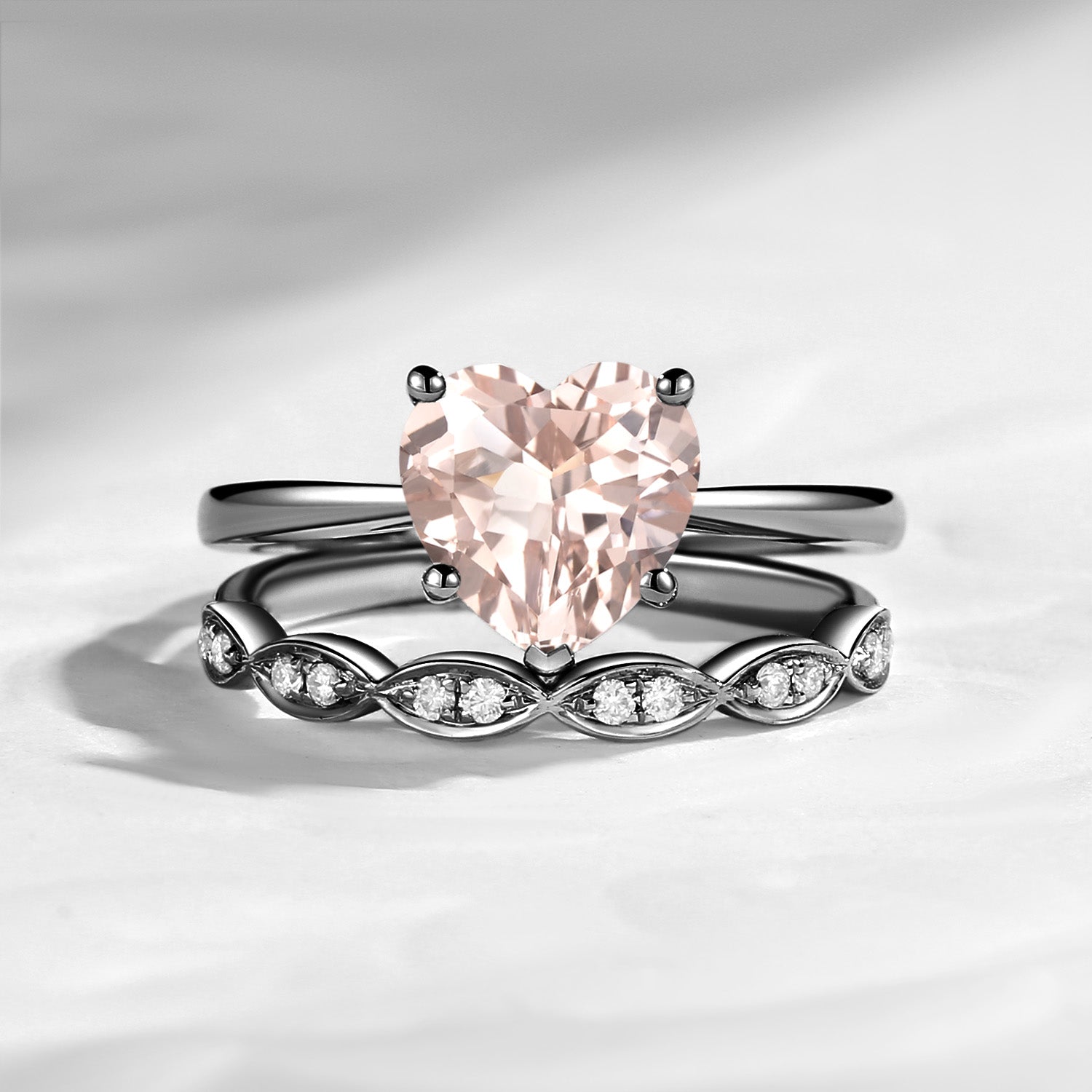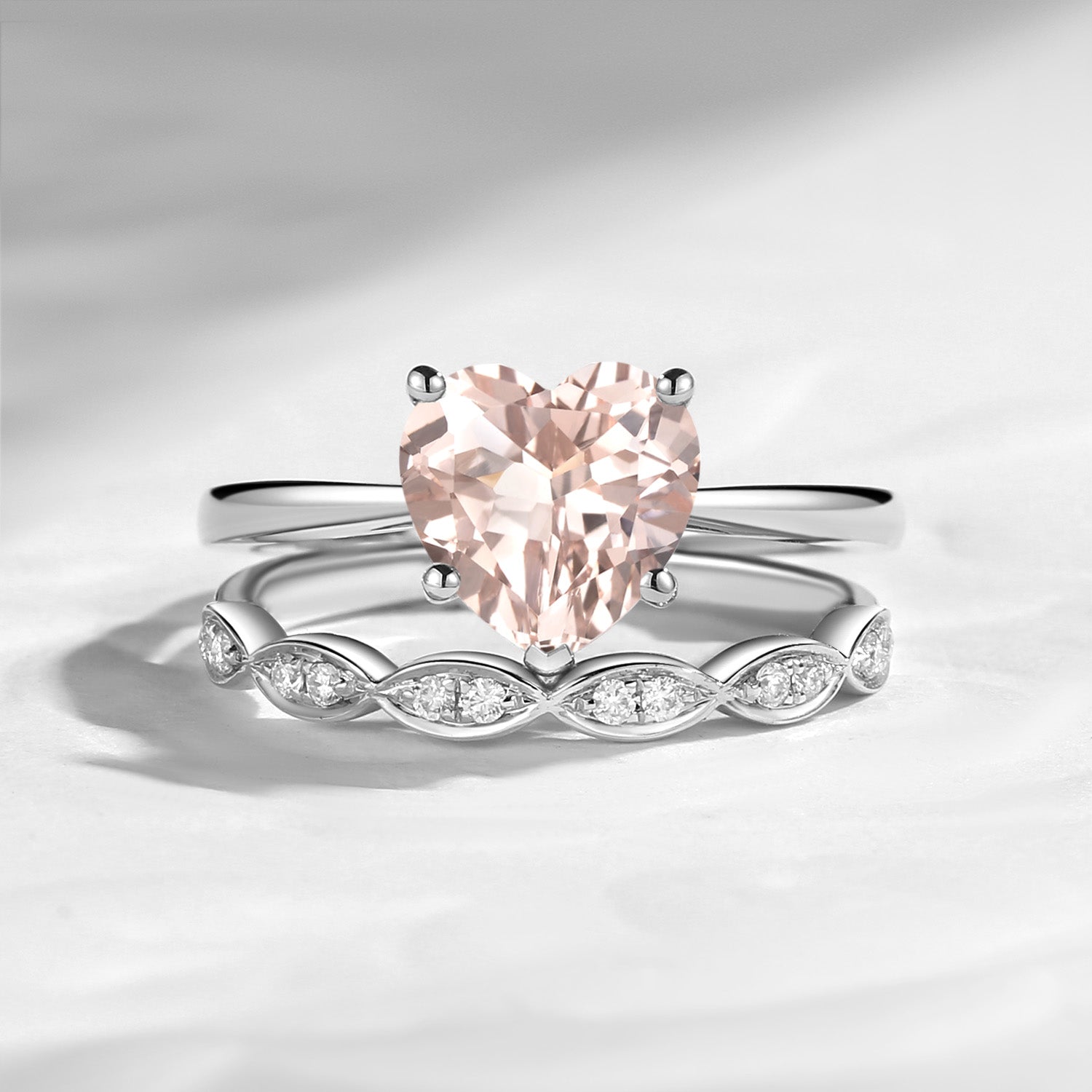 Unique Heart Shaped Solitare Morganite Engagement Ring 2pcs Set