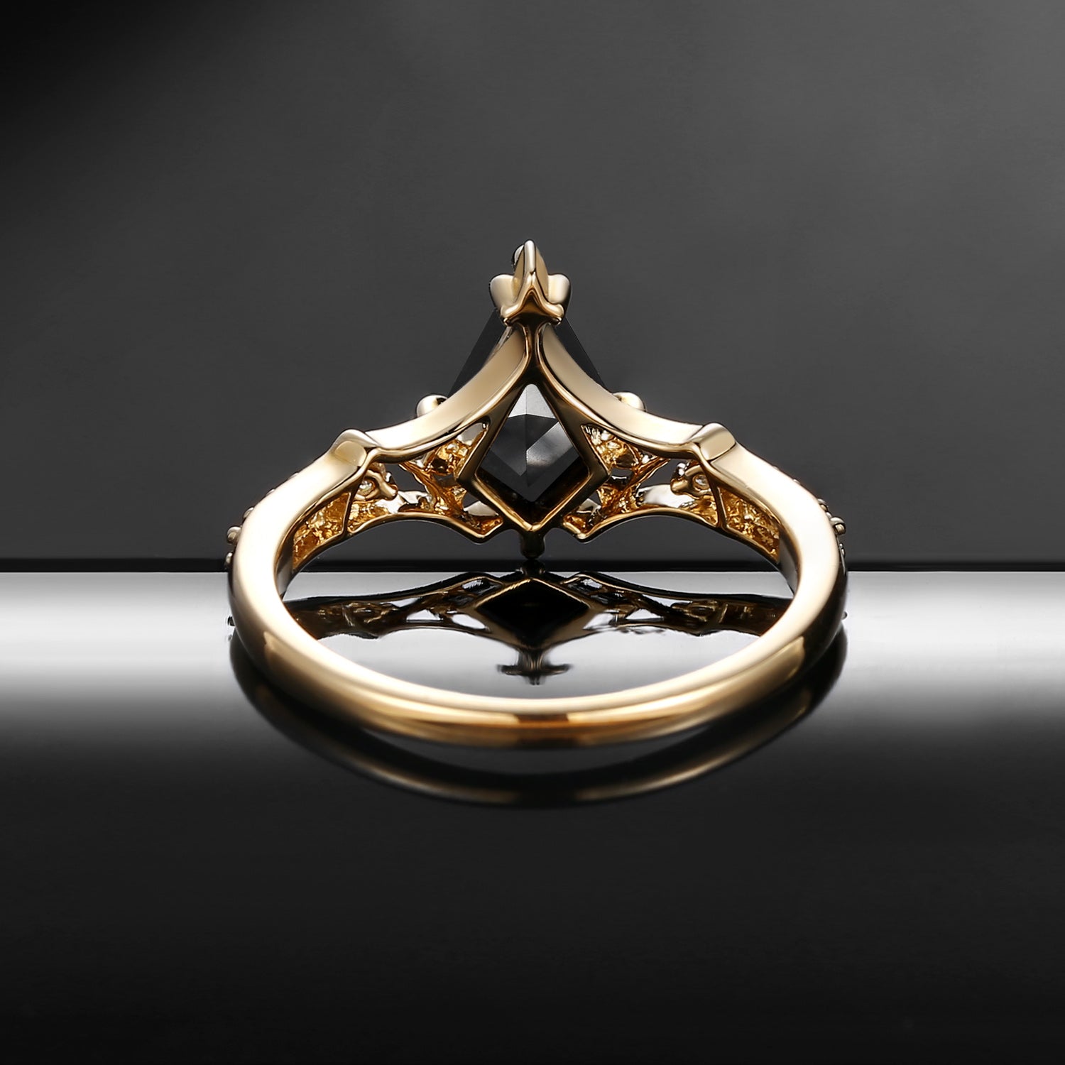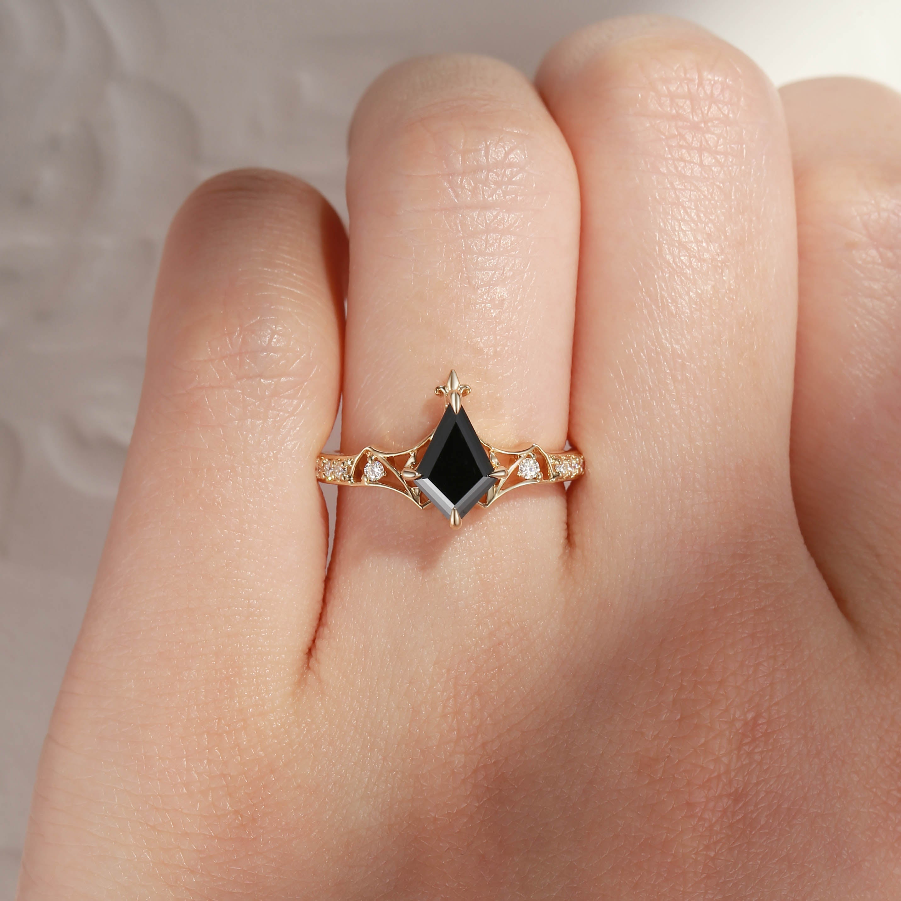 Black Moissanite Kite Cut Unique Engagement Ring - Bat Ring