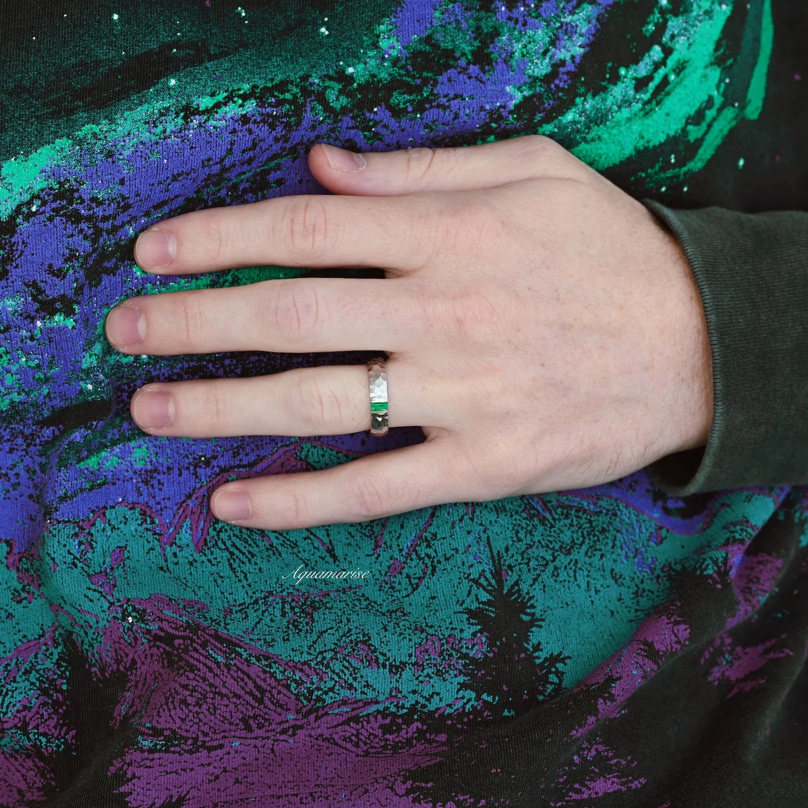 Embrace timeless simplicity and natural elegance with this Green Emerald Hammered Wedding Band, crafted in solid 925 sterling silver and designed for those who appreciate understated beauty and meaningful detail.
