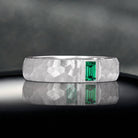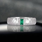 Bezel Emerald Hammered Wedding Band in Sterling Silver
