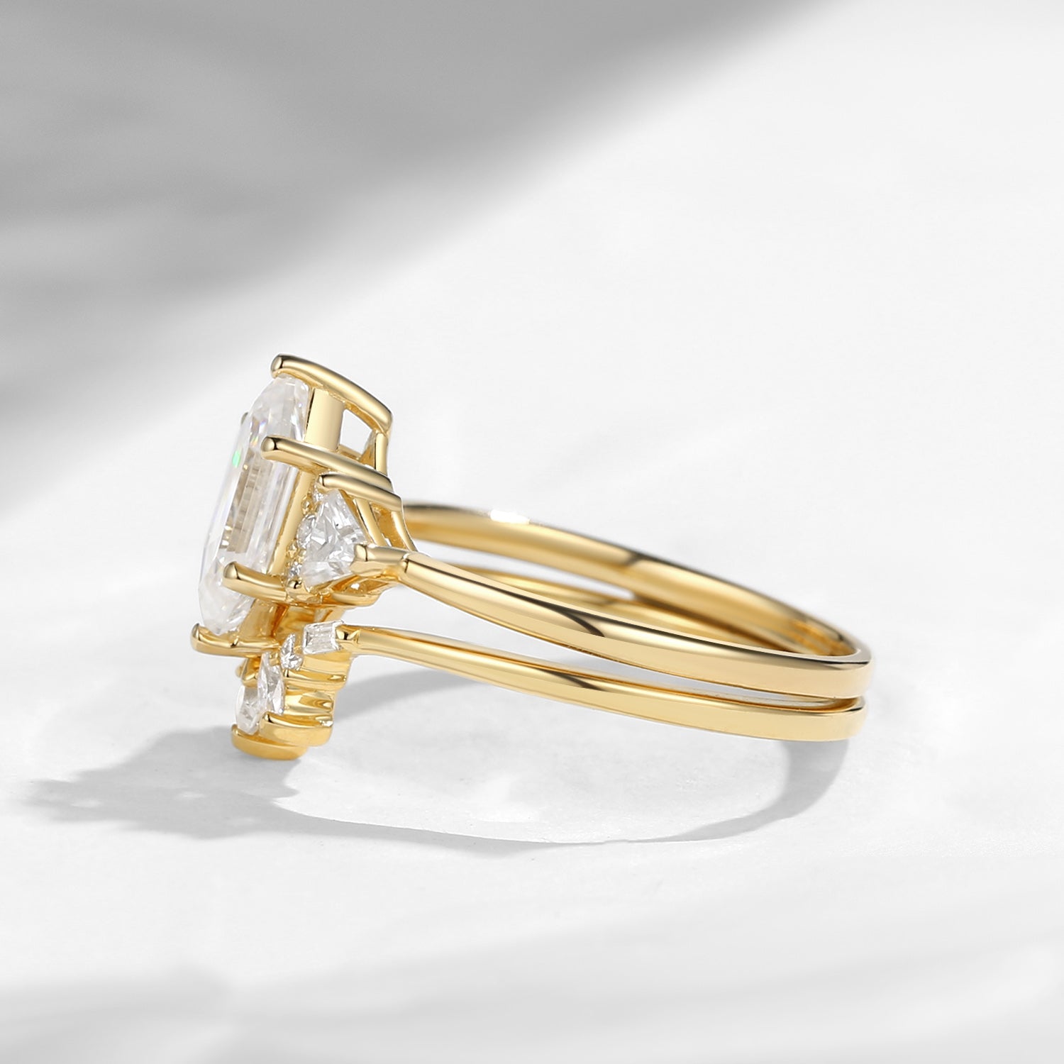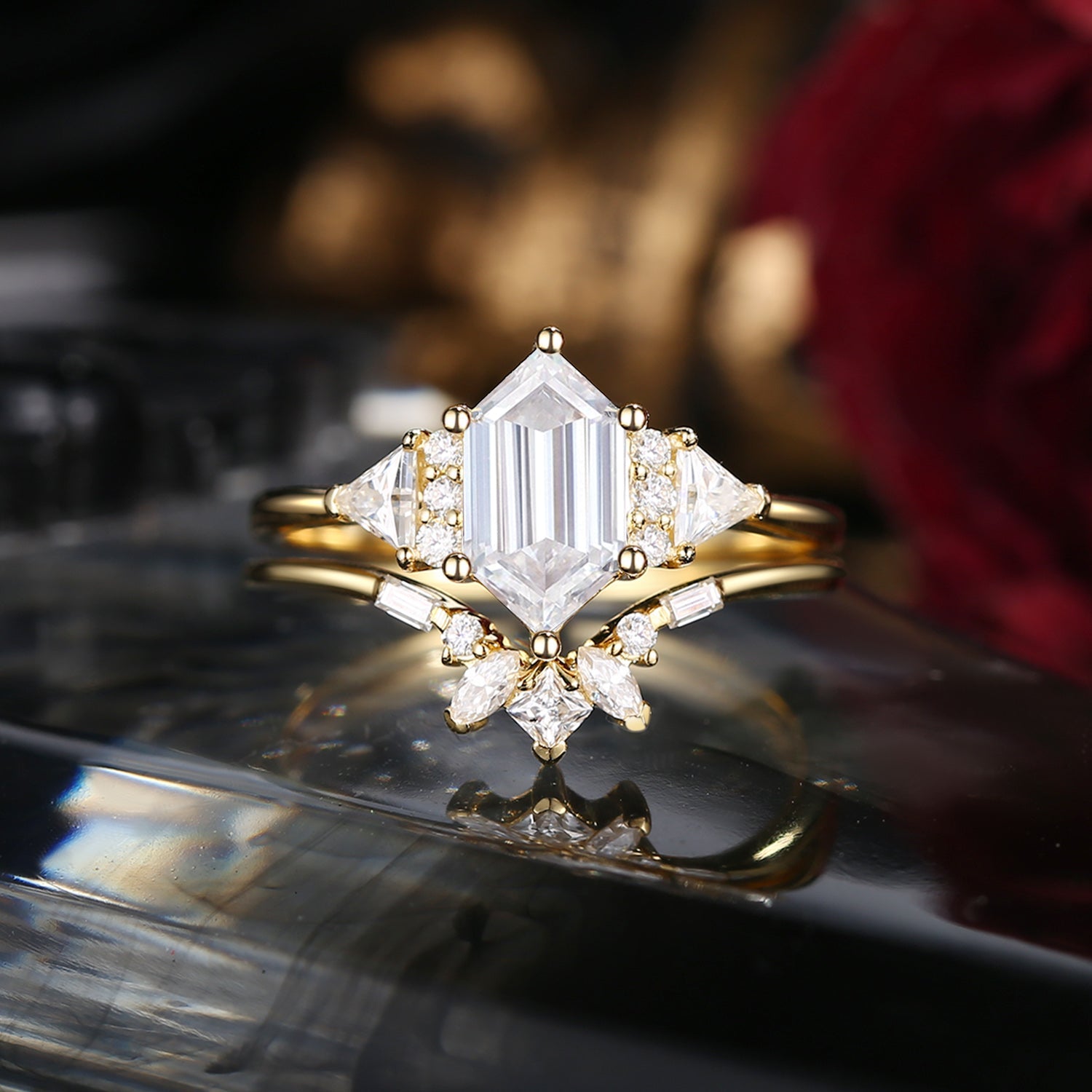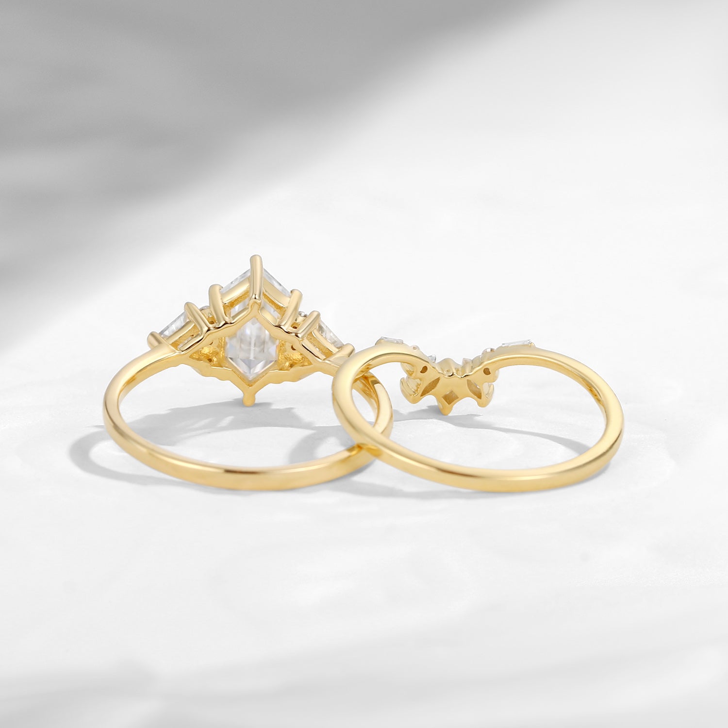 Classic Cluster Long Hexagon Cut Moissanite Engagement Ring Set 2pcs