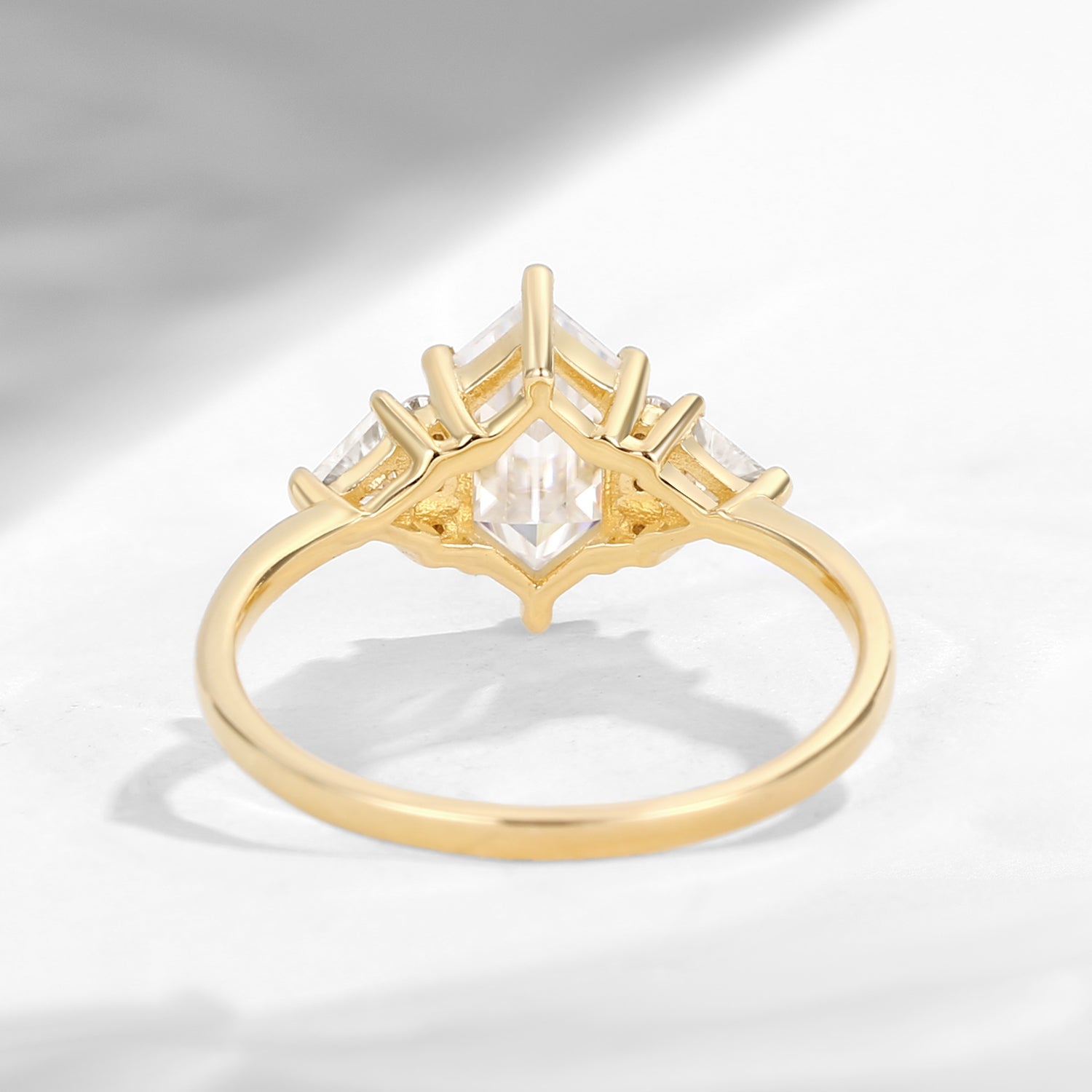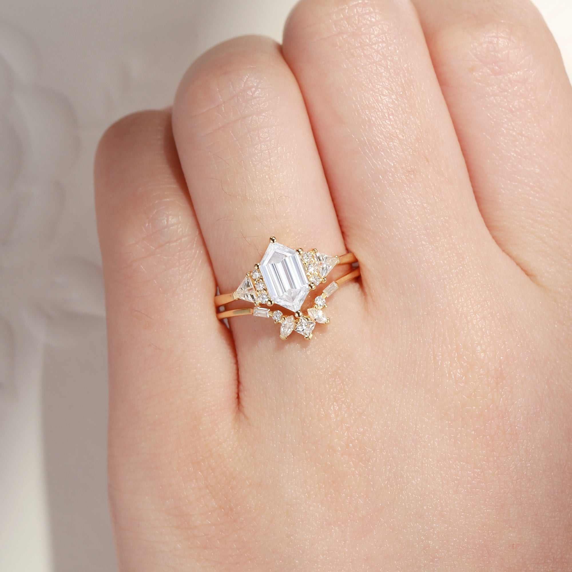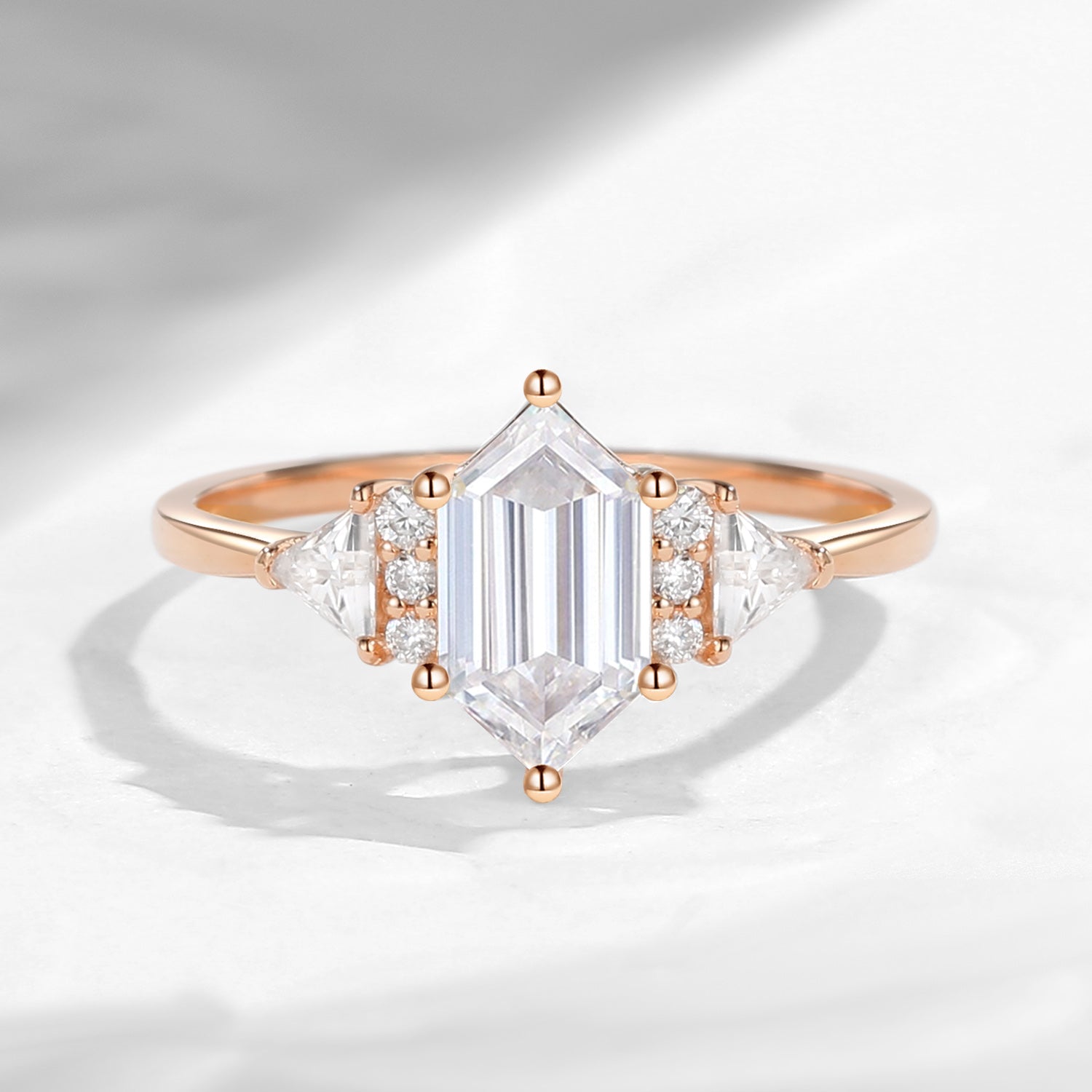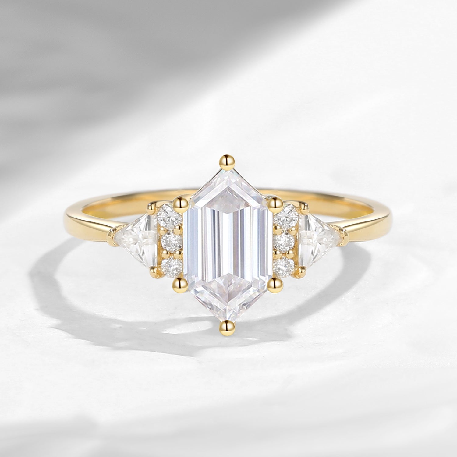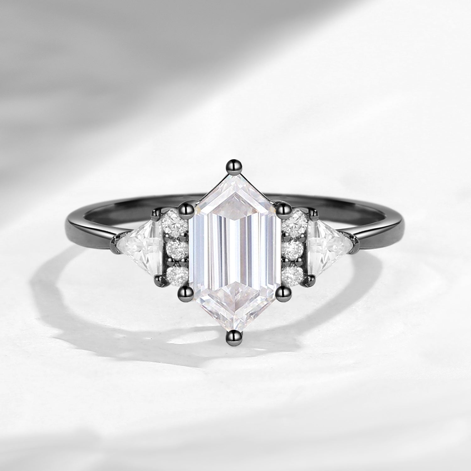 Classic Cluster Long Hexagon Cut Moissanite Engagement Ring