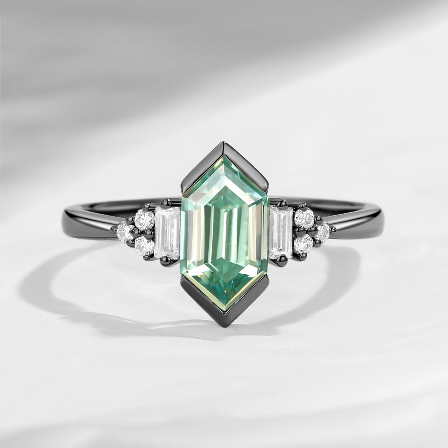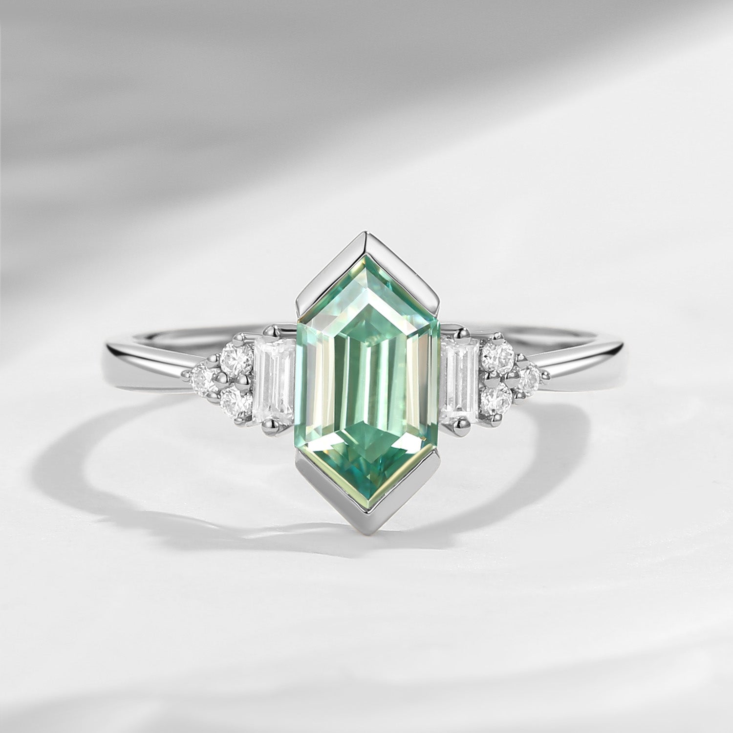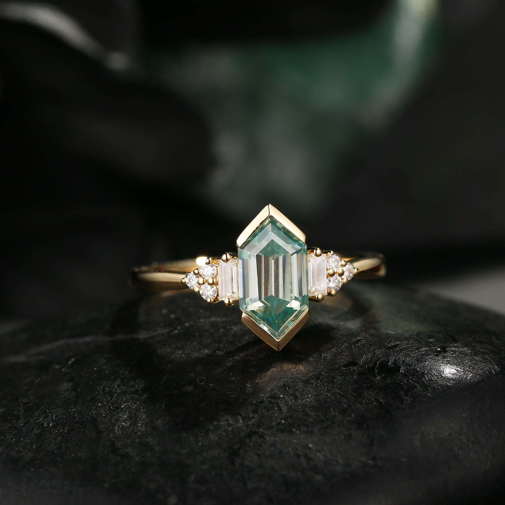 Long Hexagon Mint Moissanite Vintage Cluster Ring