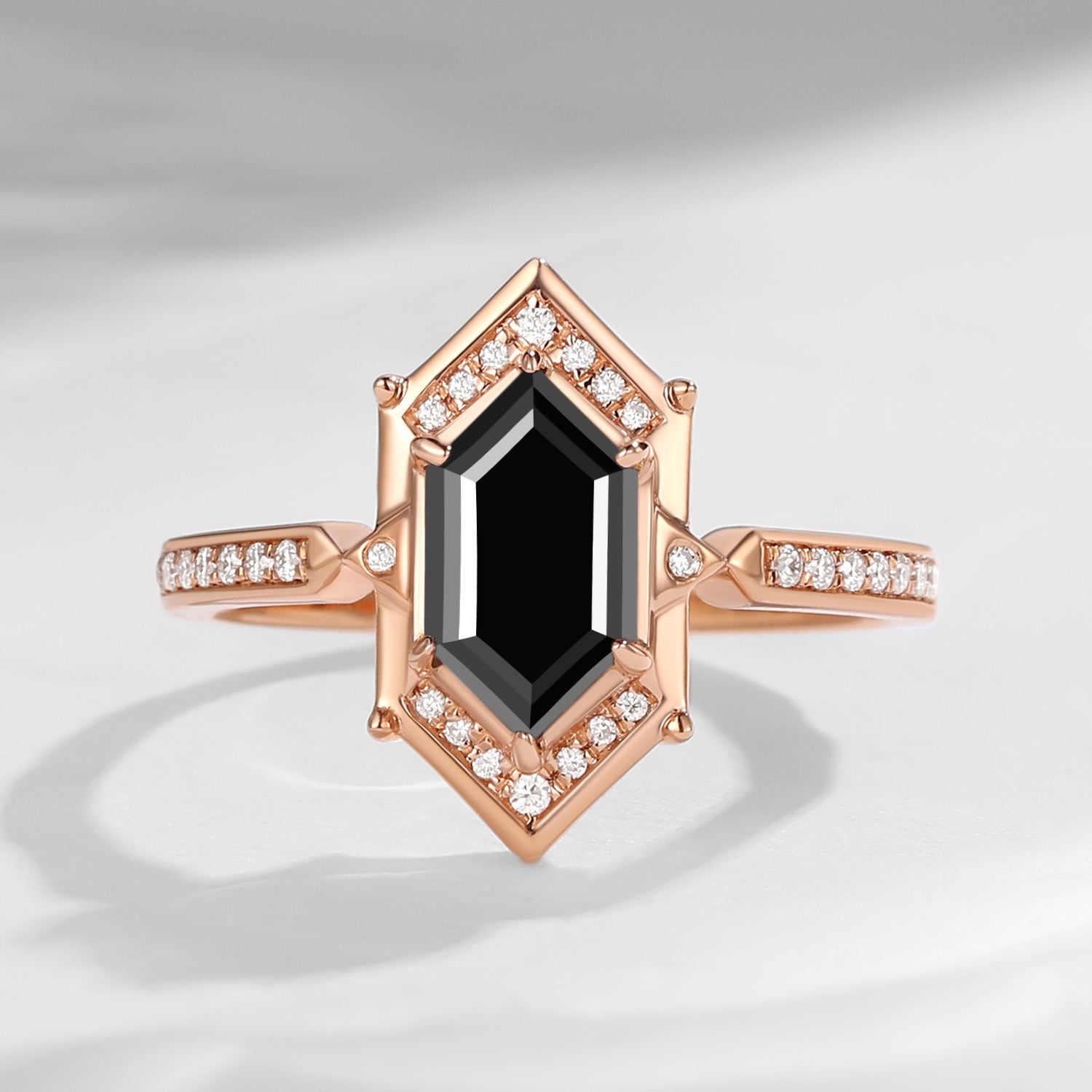 Long Hexagon Black Moissanite Vintage Engagement Ring
