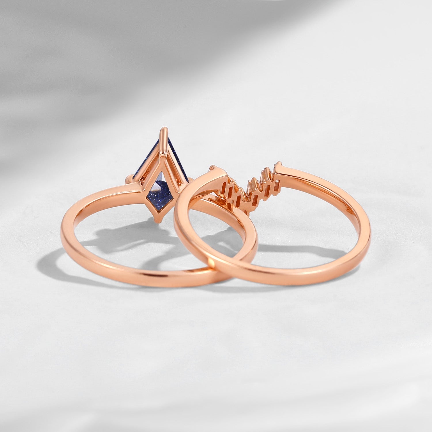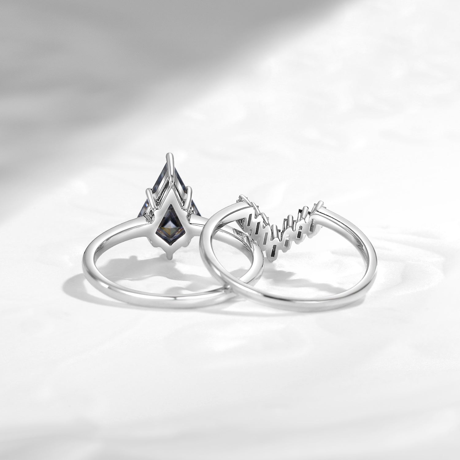 Kite Cut Moissanite Engagement Ring Set 2pcs - Electra