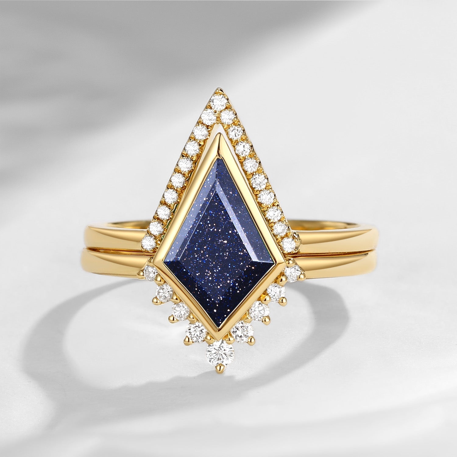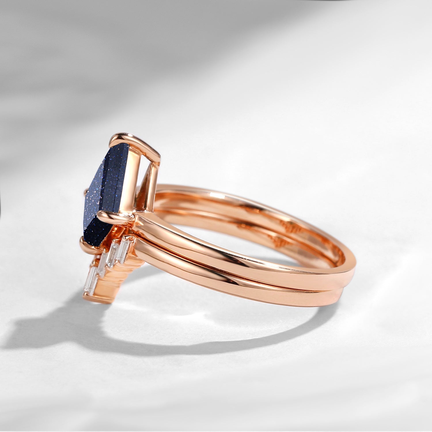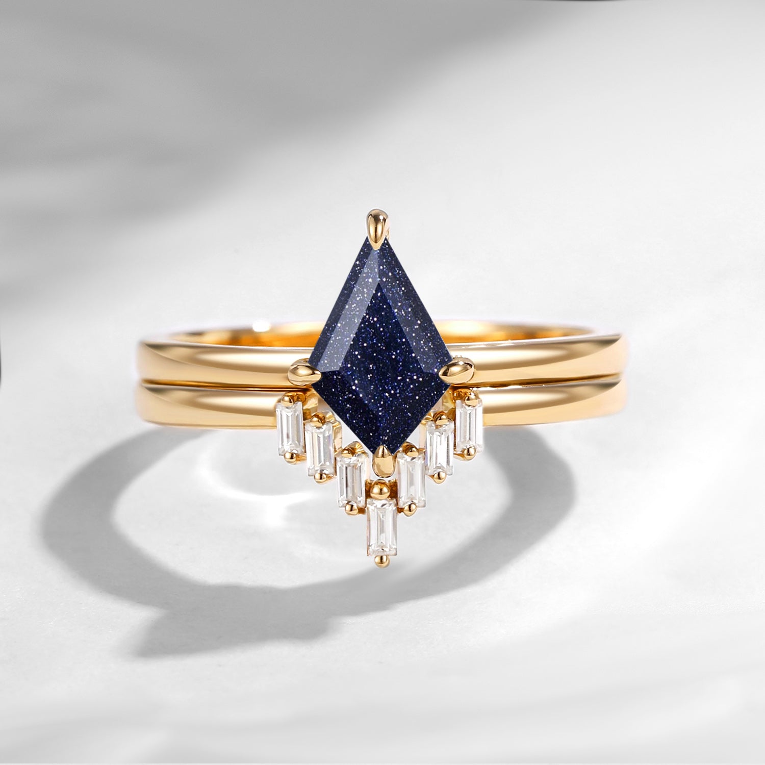 Classic Kite Cut Blue Sandstone Engagement Ring 2pcs