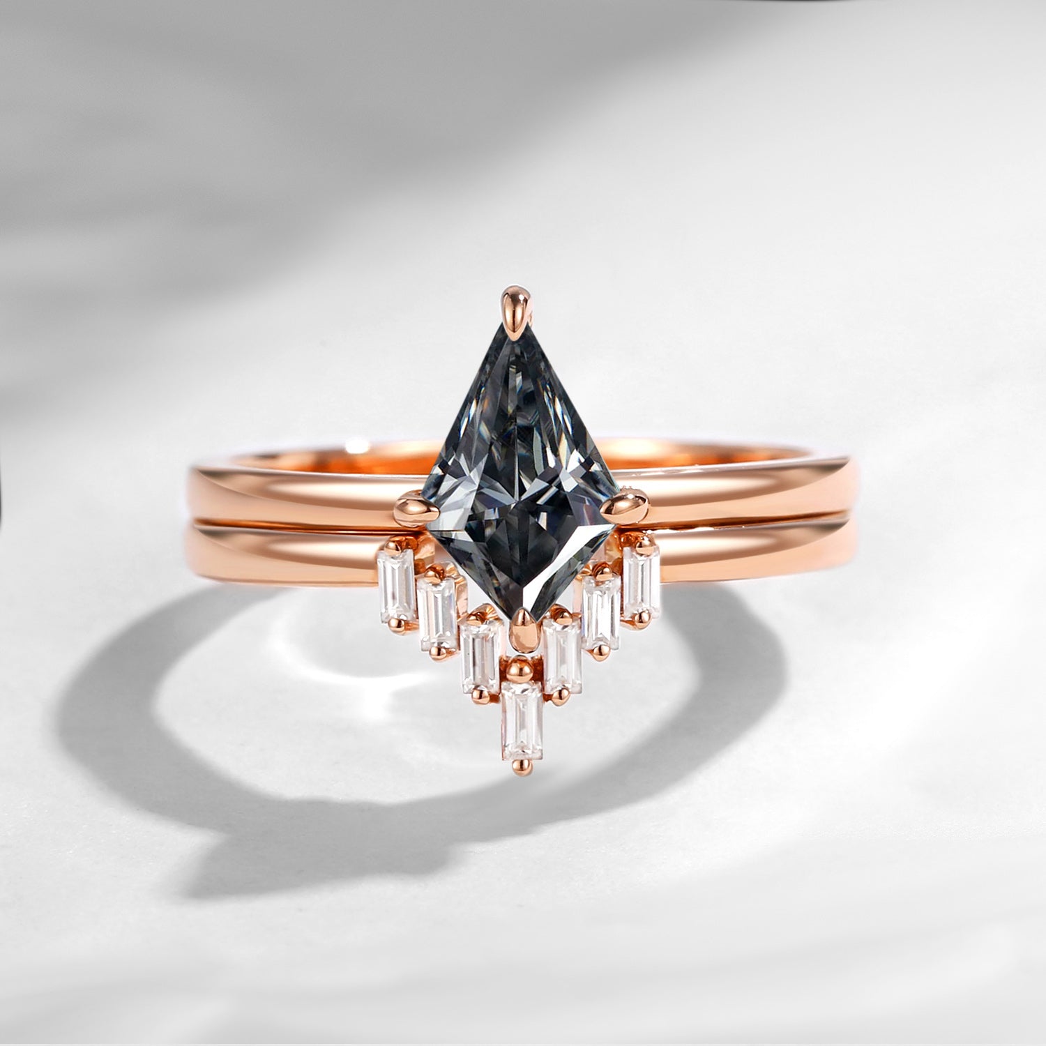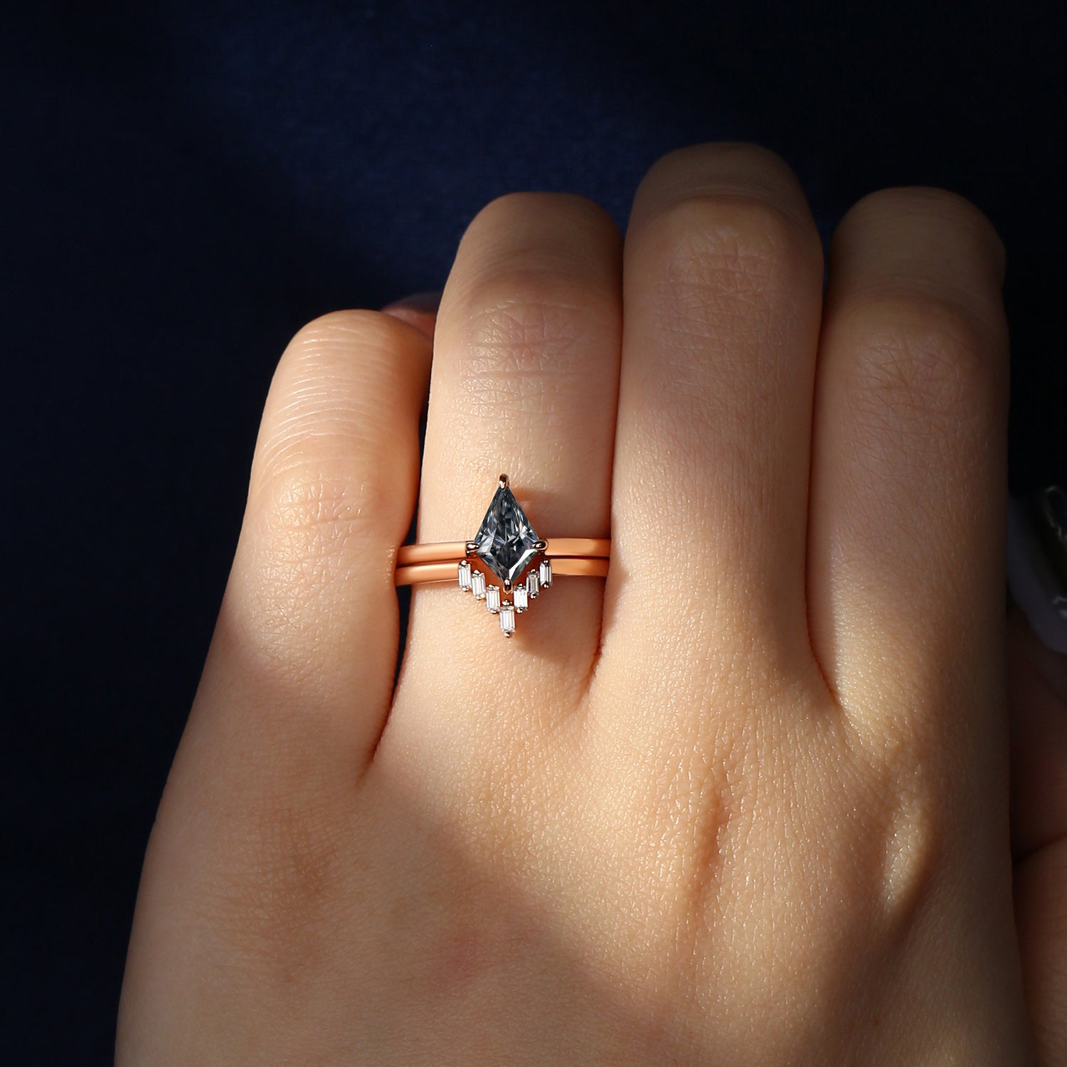 Classic Kite Cut Grey Moissanite Engagement Ring 2pcs