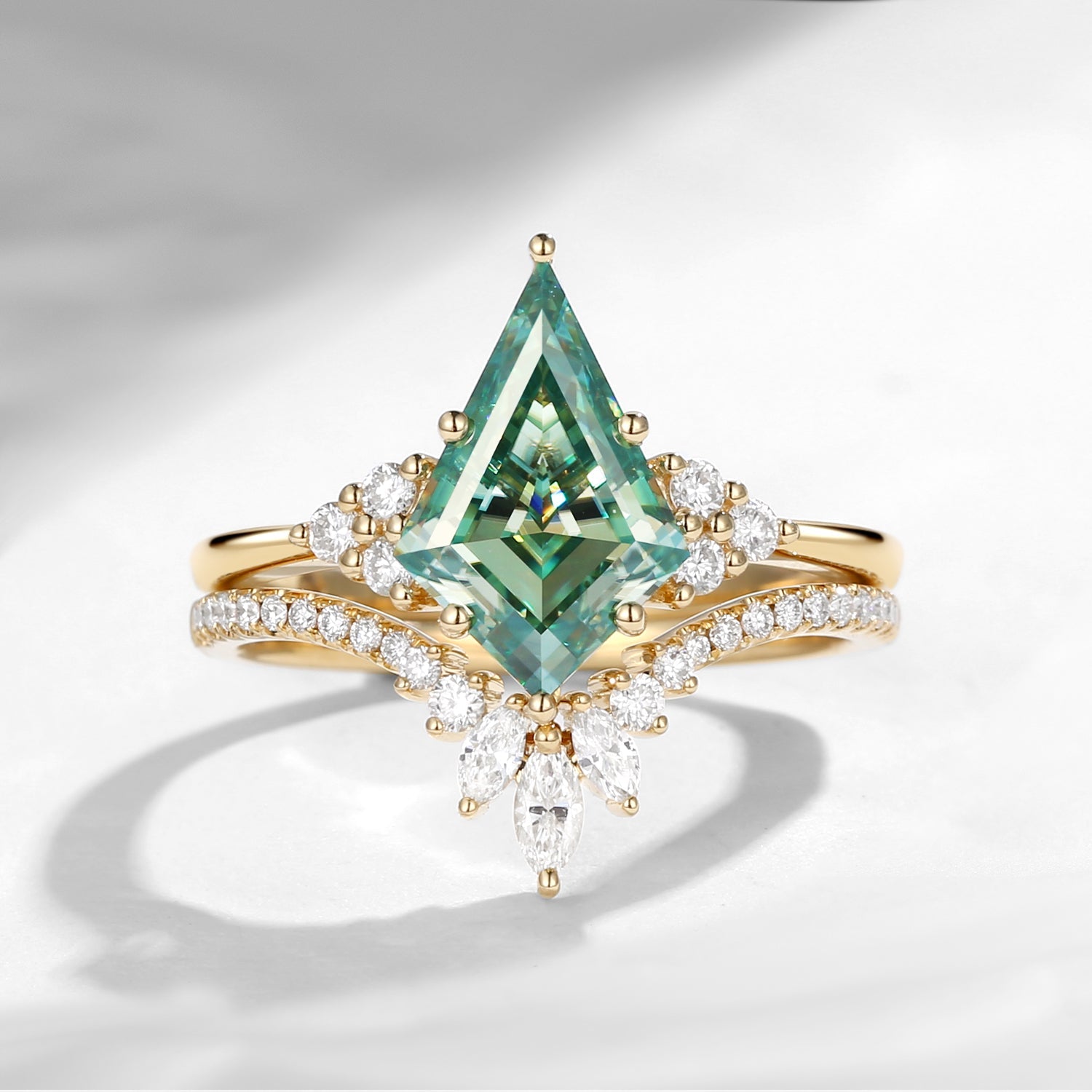 Kite Cut Green Moissanite Engagement Ring Set 2pcs - Electra