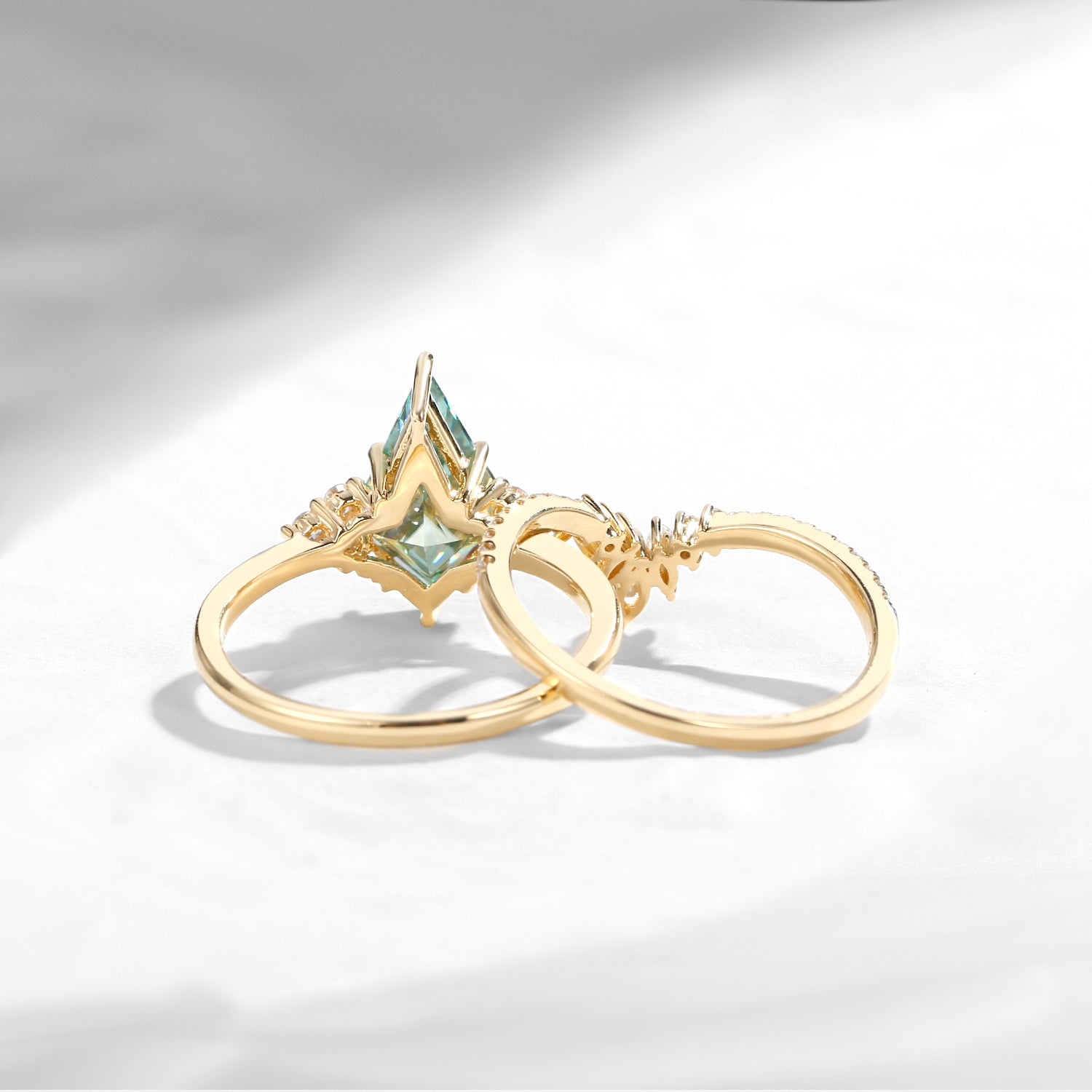 Kite Cut Mint Moissanite Engagement Ring Set 2pcs - Electra