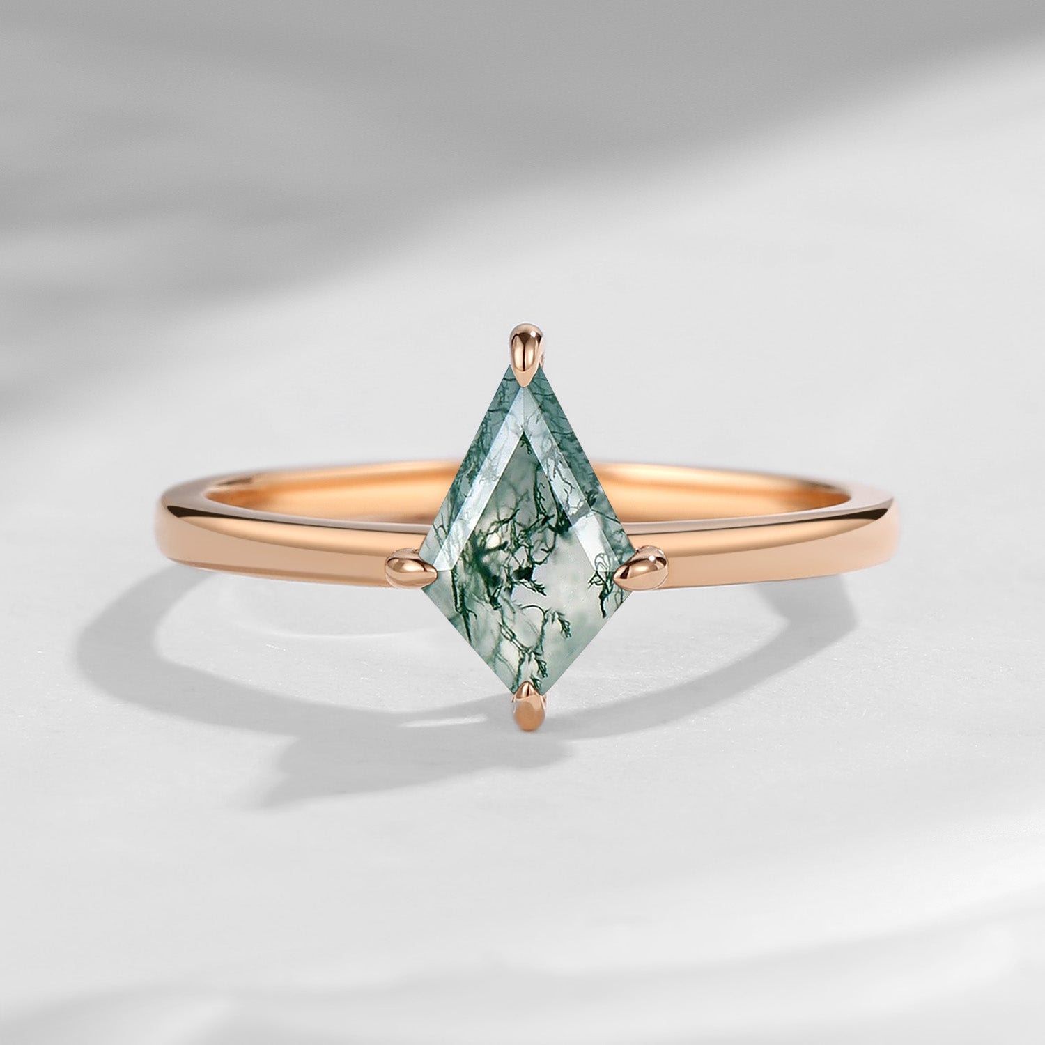 Classic Kite Cut Moss Agate Engagement Ring 2pcs