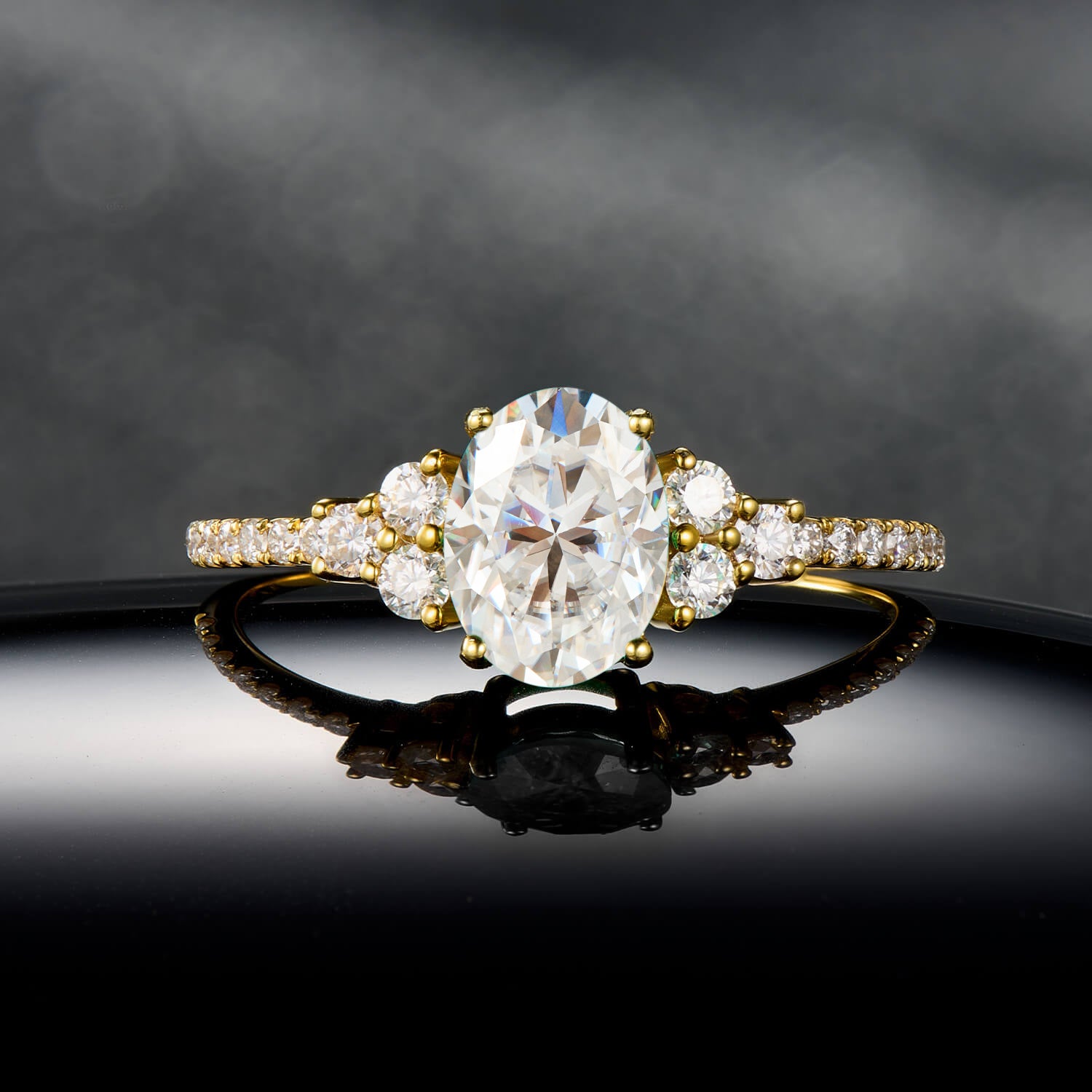 Brilliant Oval Cut Moissanite Ring in Yellow Gold Elegant Luxury Style Engagement Ring