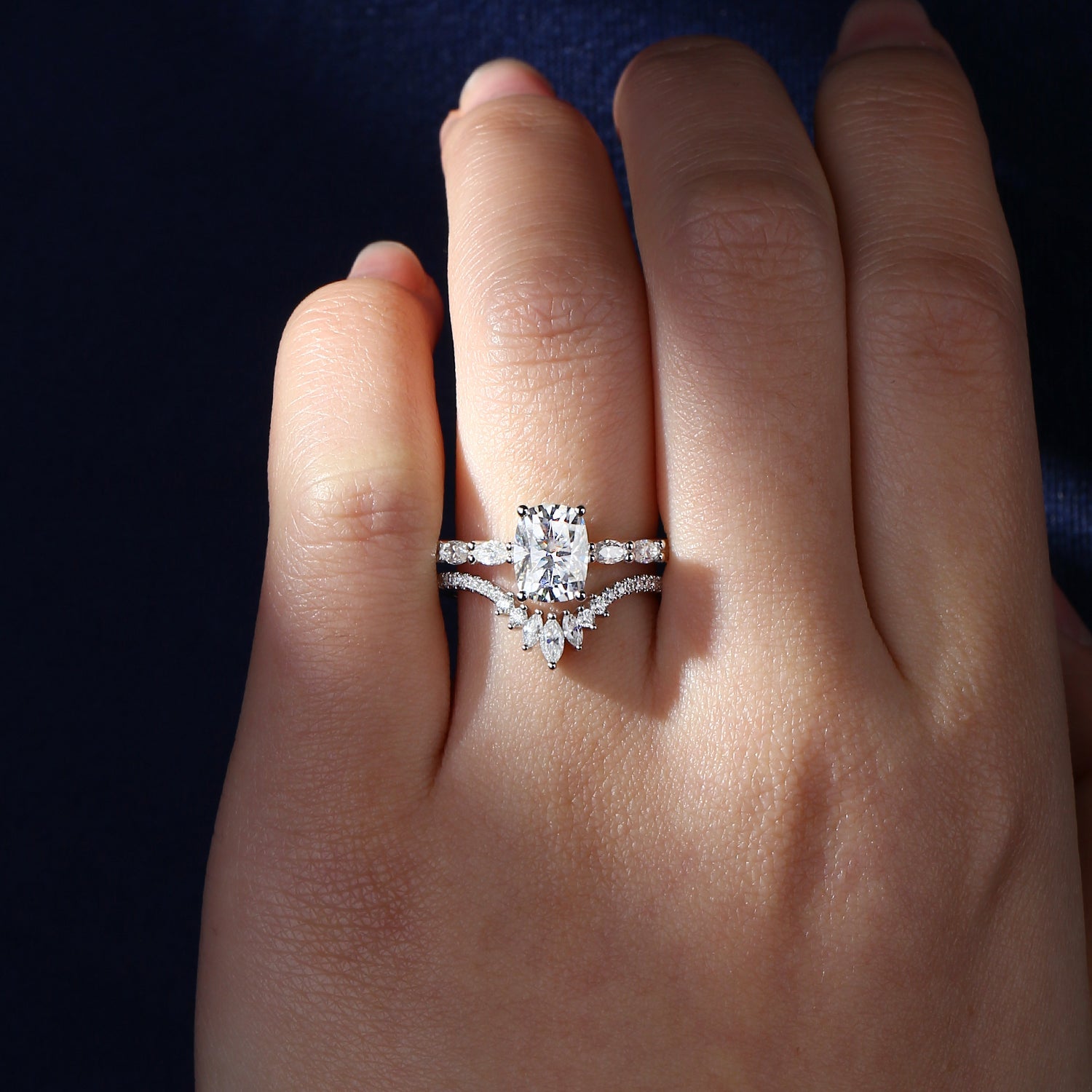 Cushion Cut Moissanite Classic Ring Set 2PCS