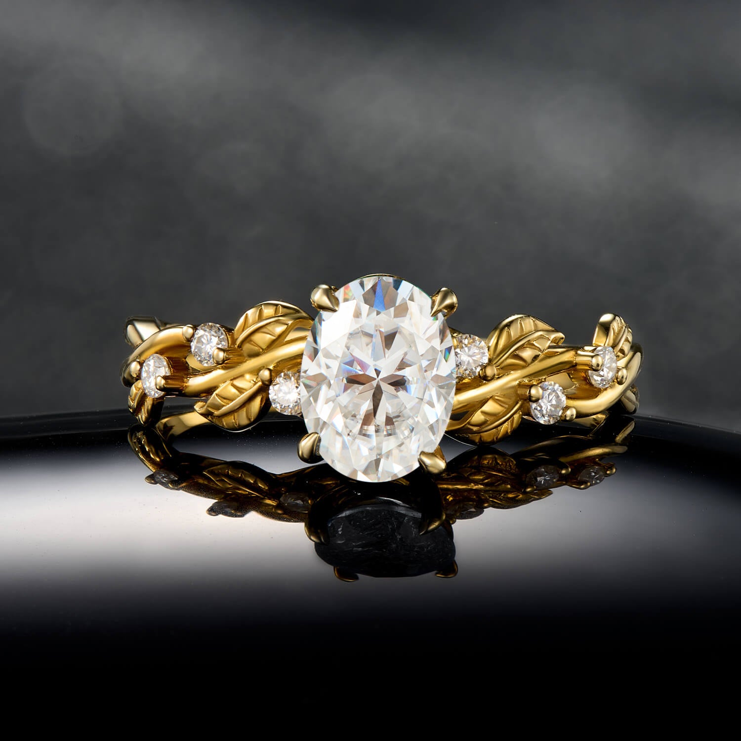 Dazzling Starlight Oval Cut Moissanite Ring in Gold Branch Style Elegant Statement Engagement Ring