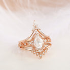 At the center is a brilliant pear-cut moissanite, expertly faceted to maximize fire and clarity. The elongated pear shape creates a graceful silhouette, drawing the eye to its luminous sparkle and classic beauty.